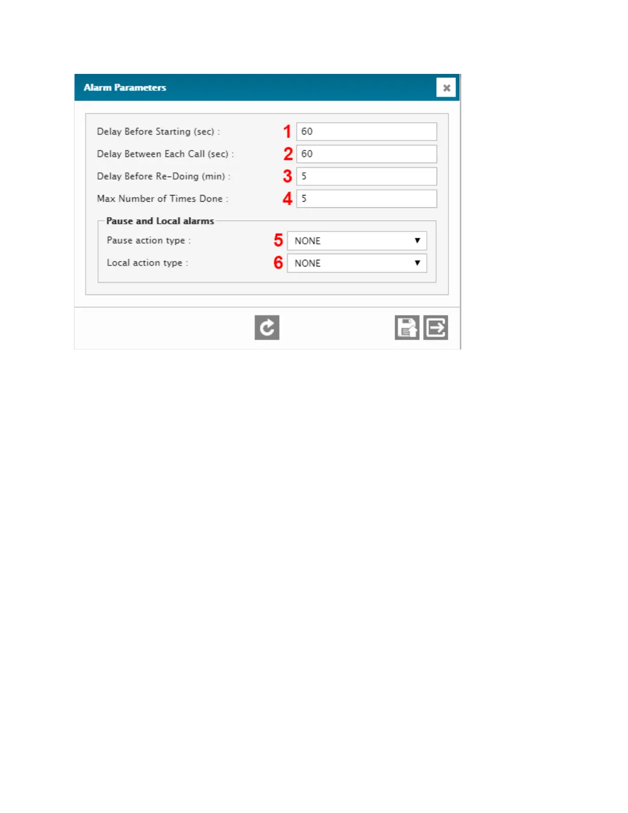 4. Maximum number of times the Cortex goes through the alarm call list. This only