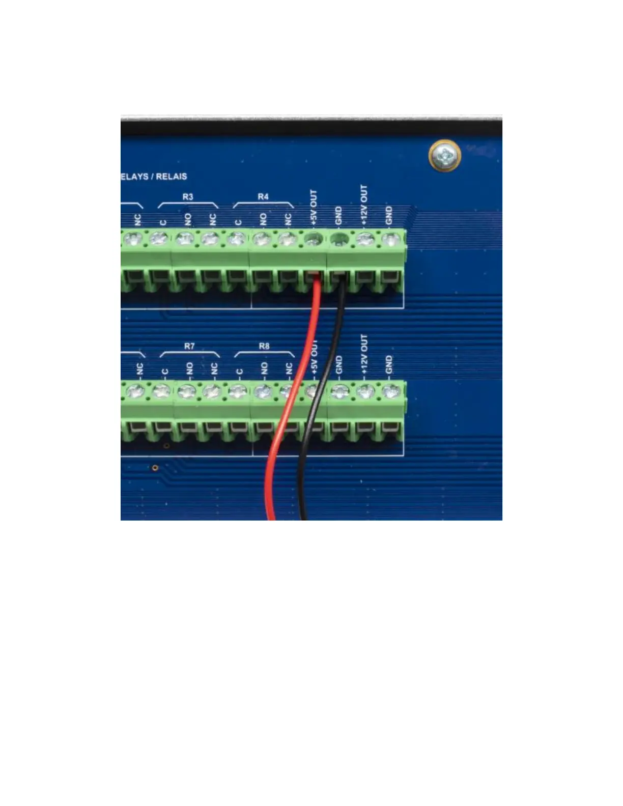 5. Insert the black wire into the GND next to the +5V OUT (i.e. next to the red wire)