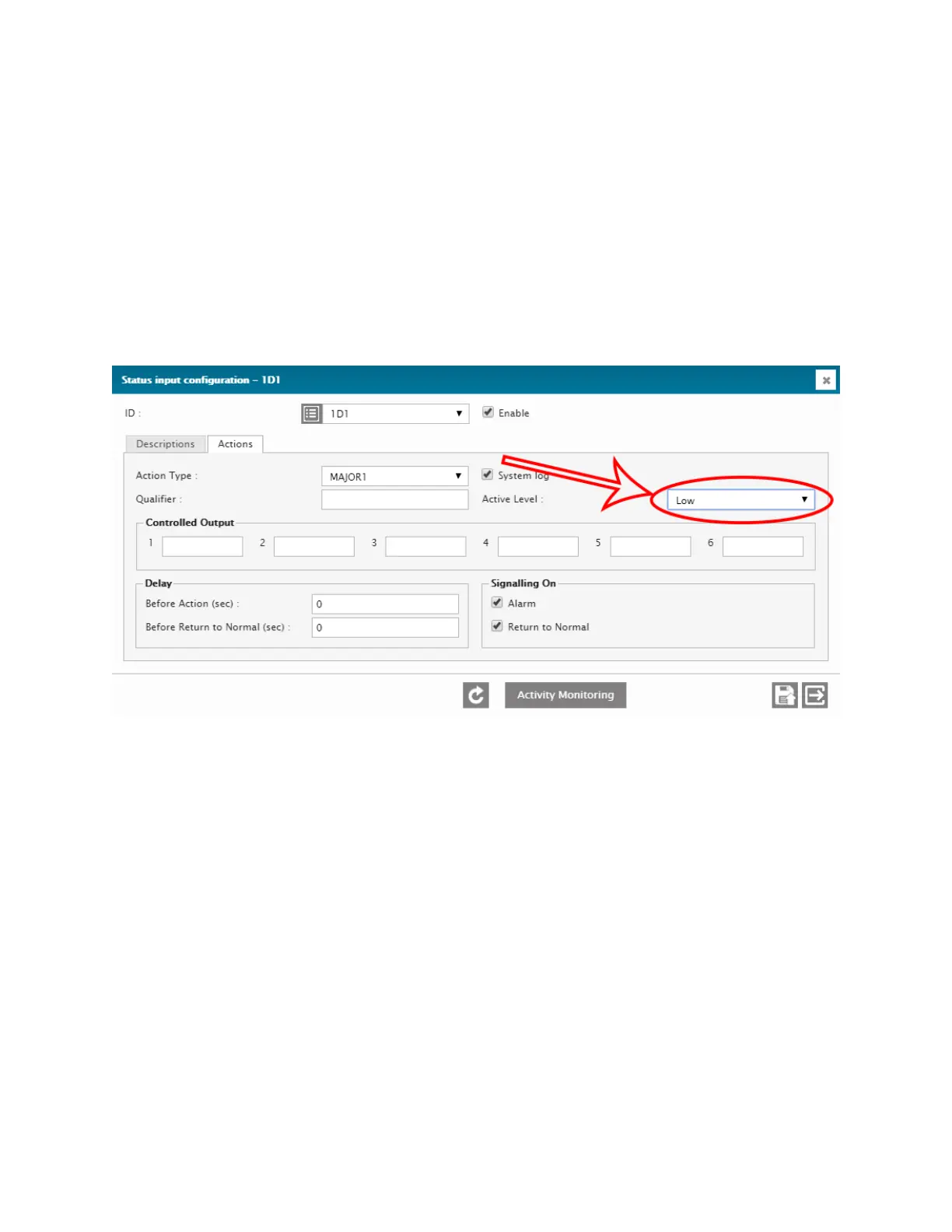 7. Set the Active Level. The Active Level determines when the Status Input will switch