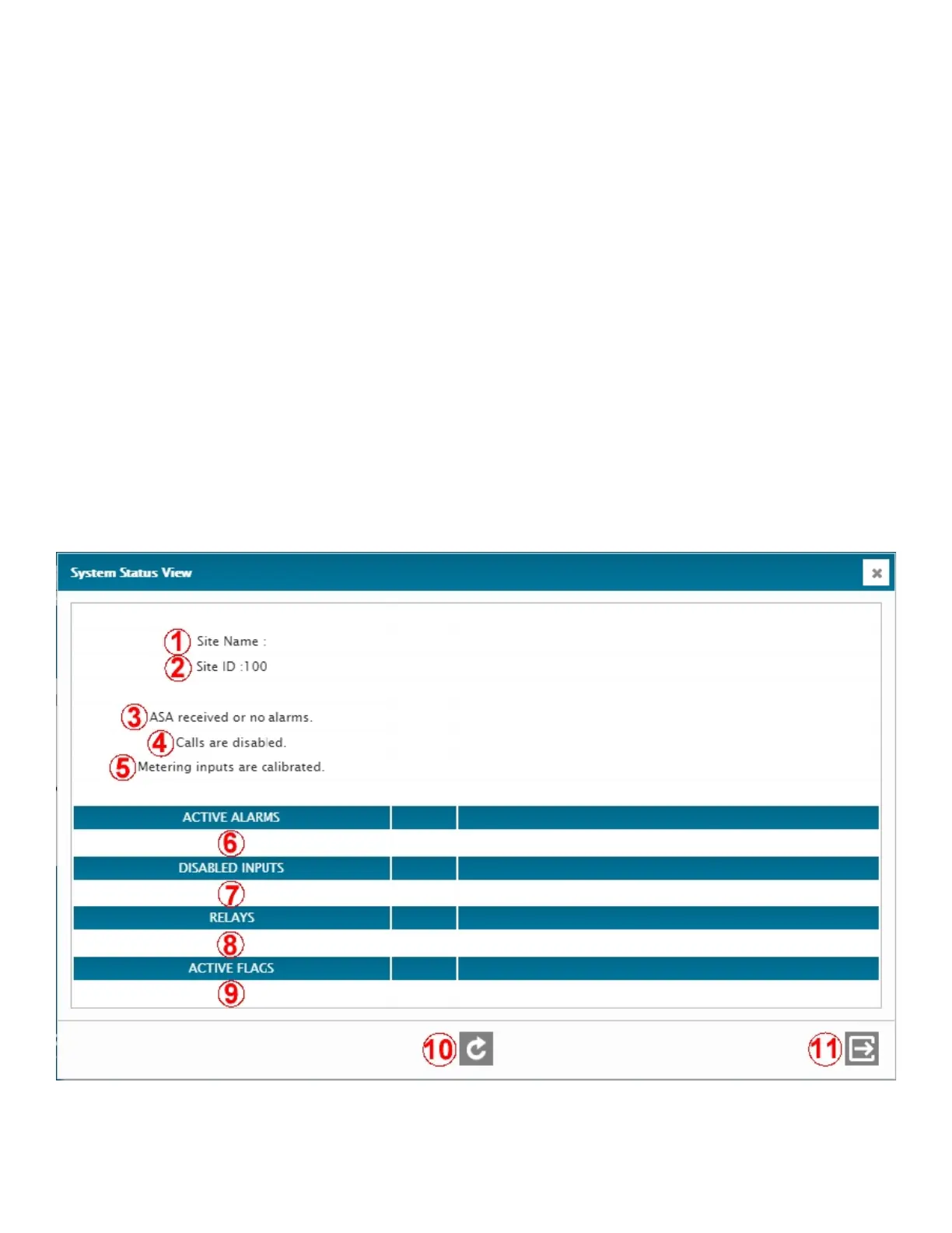 The System Status View is a screen that shows information and overall status of different settings and I/O’s at the site.It