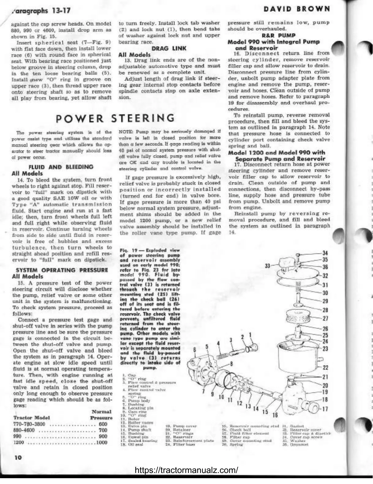 David Brown 1200 - POWER STEERING; FLUID AND BLEEDING; SYSTEM OPERATING PRESSURE; R&R PUMP