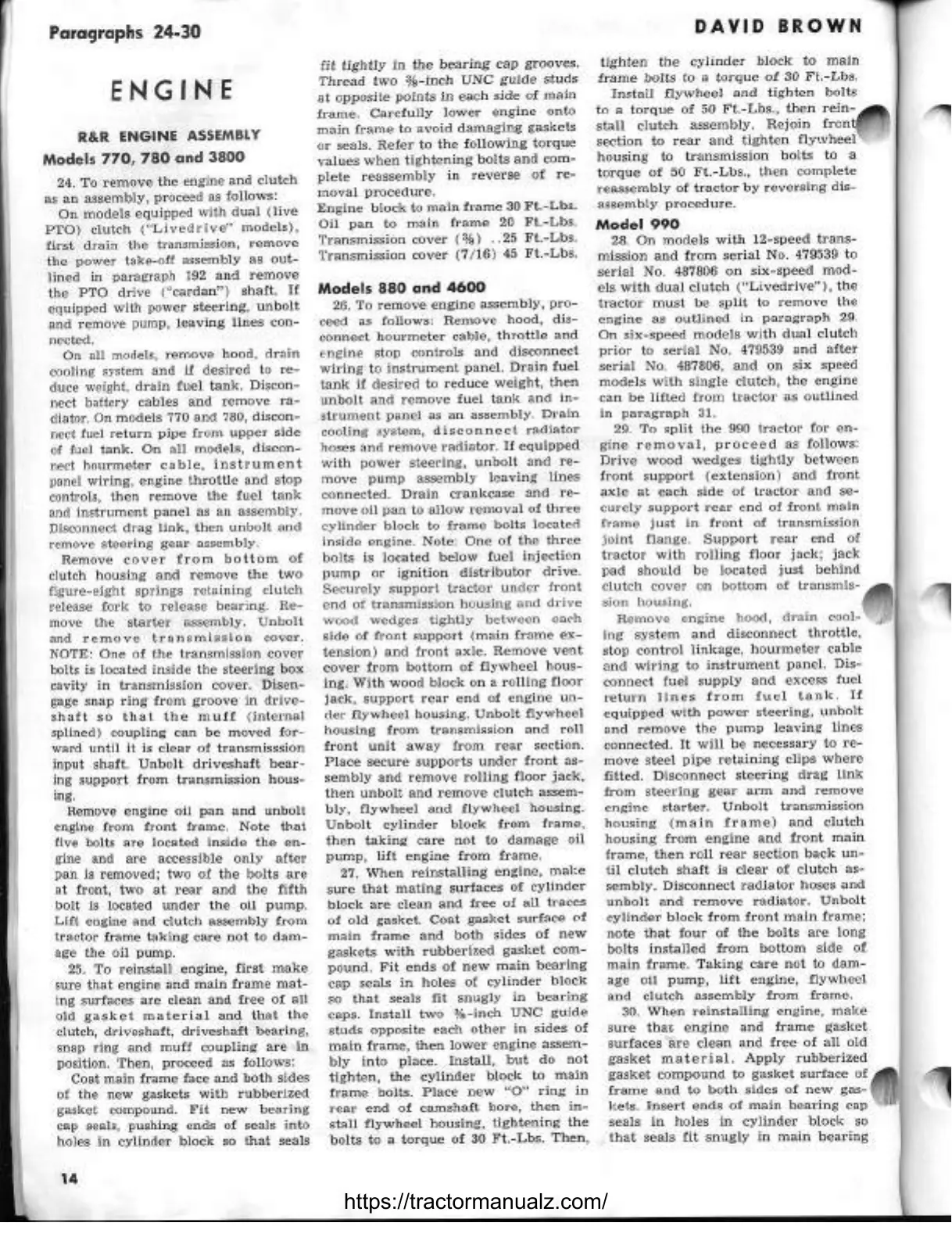David Brown 1200 - ENGINE; R&R ENGINE ASSEMBLY