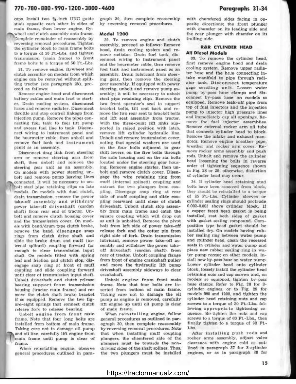 David Brown 1200 - R&R CYLINDER HEAD; All Diesel Models