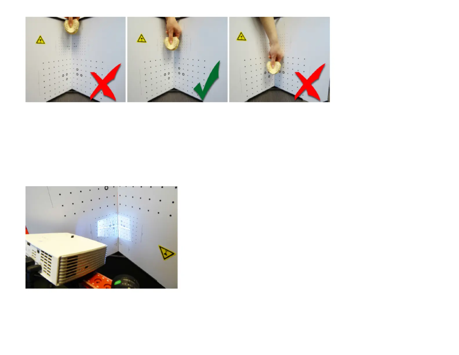 same distance as the object previously, so that the projection and camera image are sharp. Camera and
