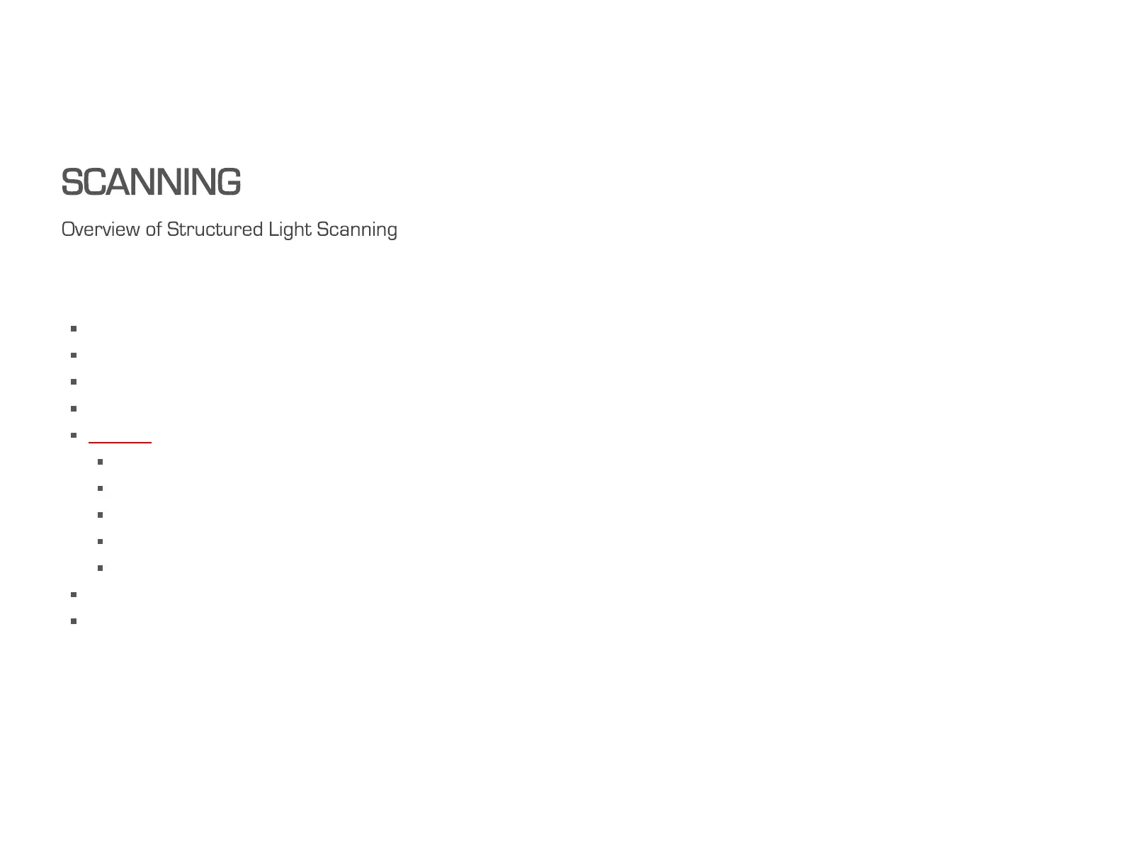 The "Scanning" menu provides functions to setup scan parameters, capture new scans including texture,