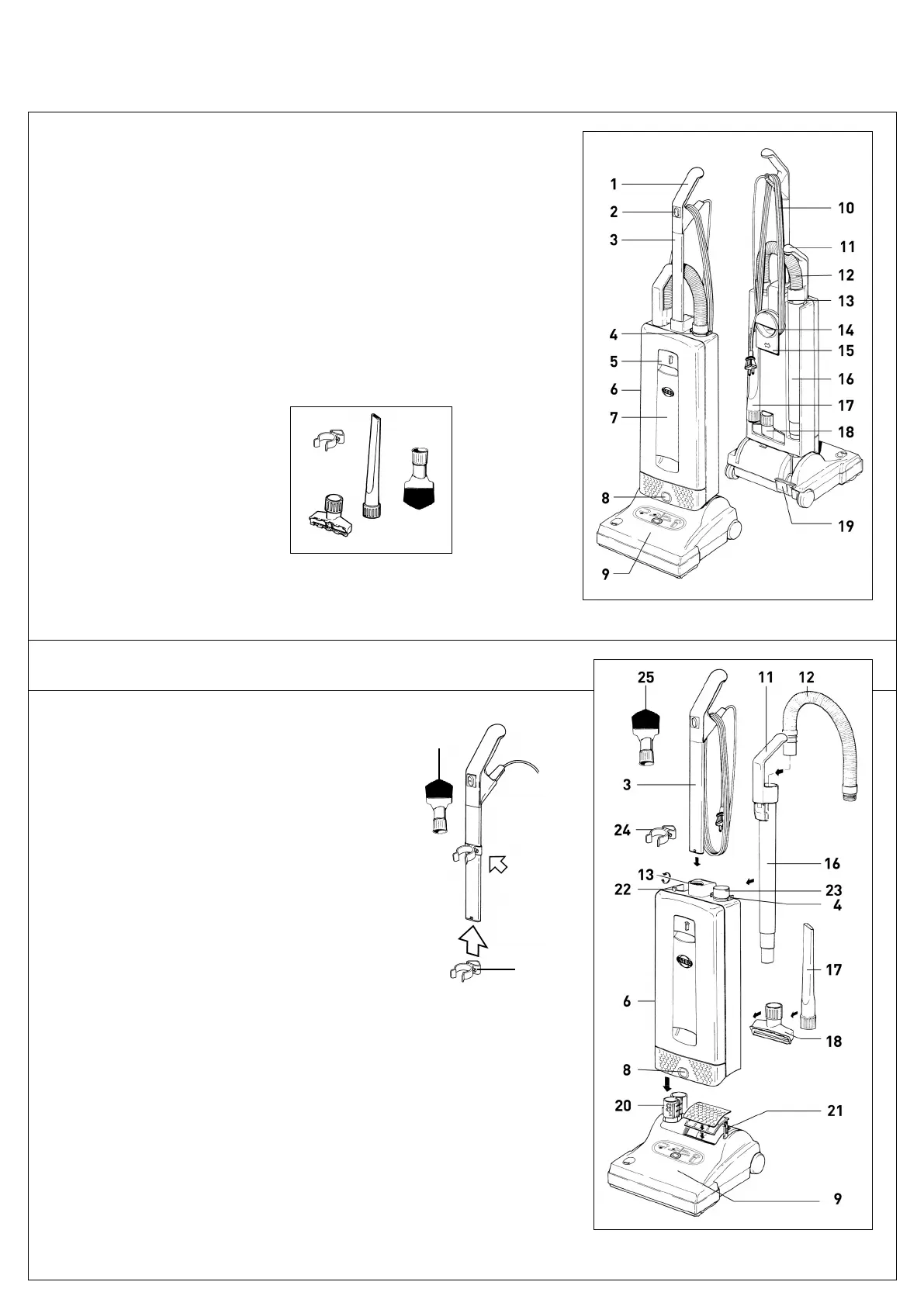 Insert crevice nozzle (17) and upholstery nozzle (18)