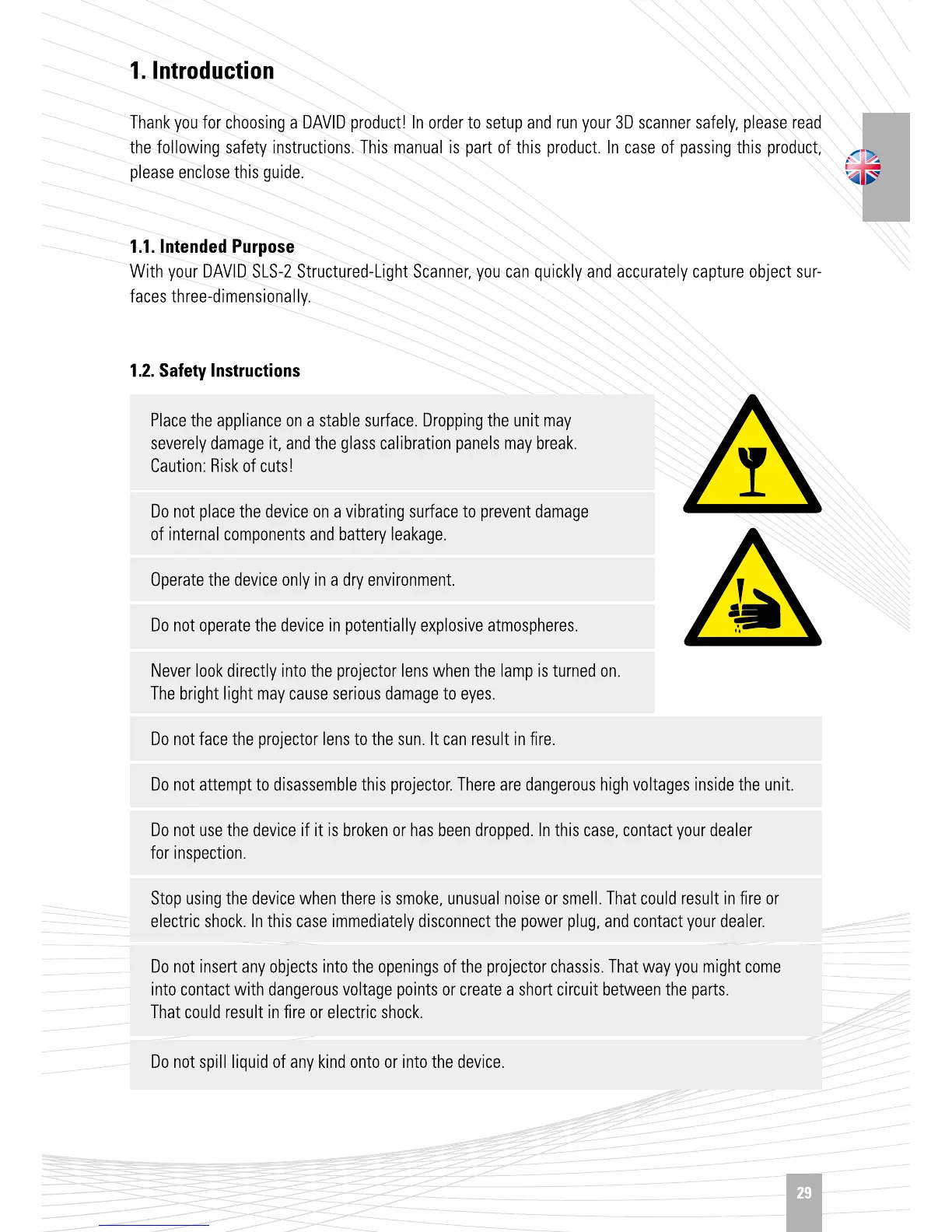 DAVID SLS-2 - Intended Use; Safety Instructions