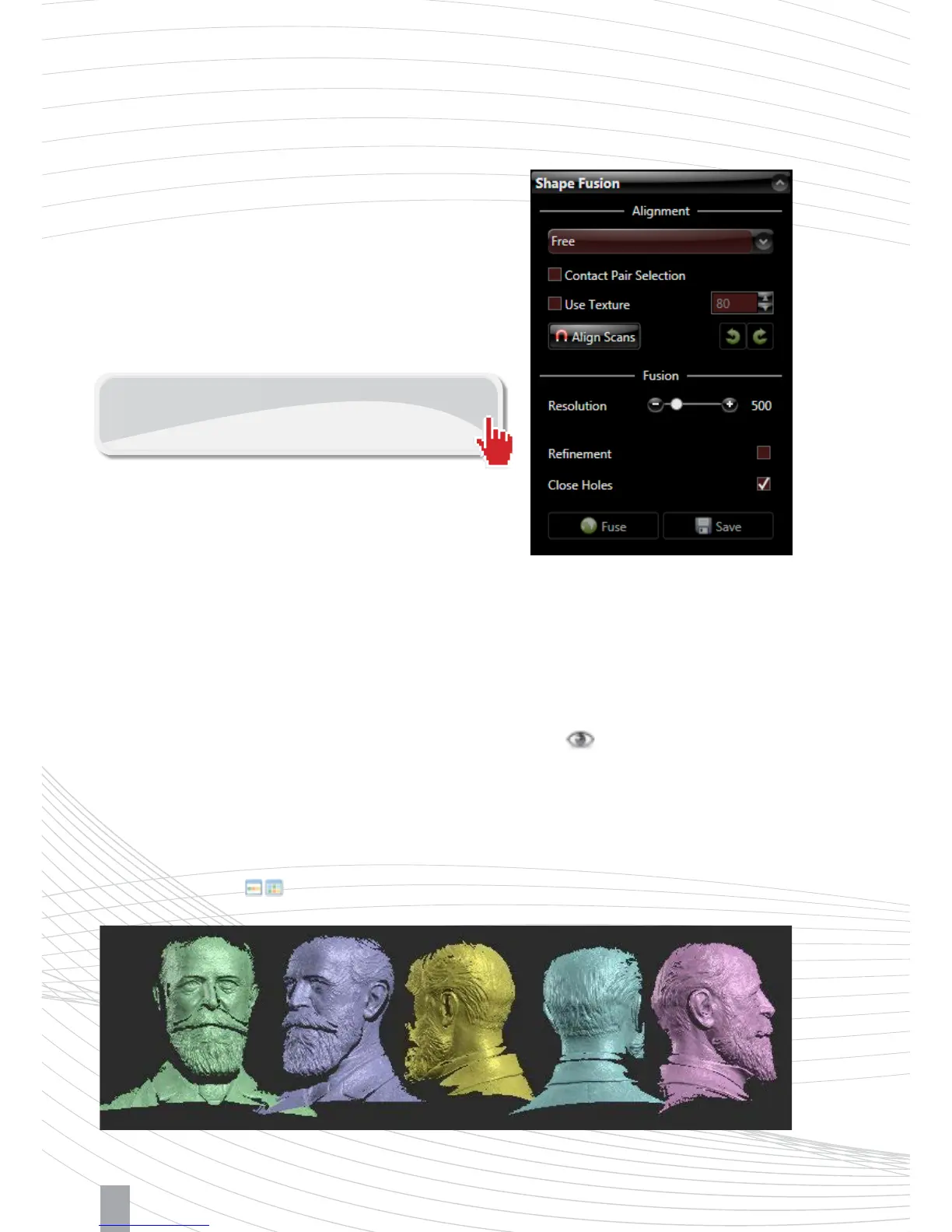 several scans into a single 360° model. The fused object