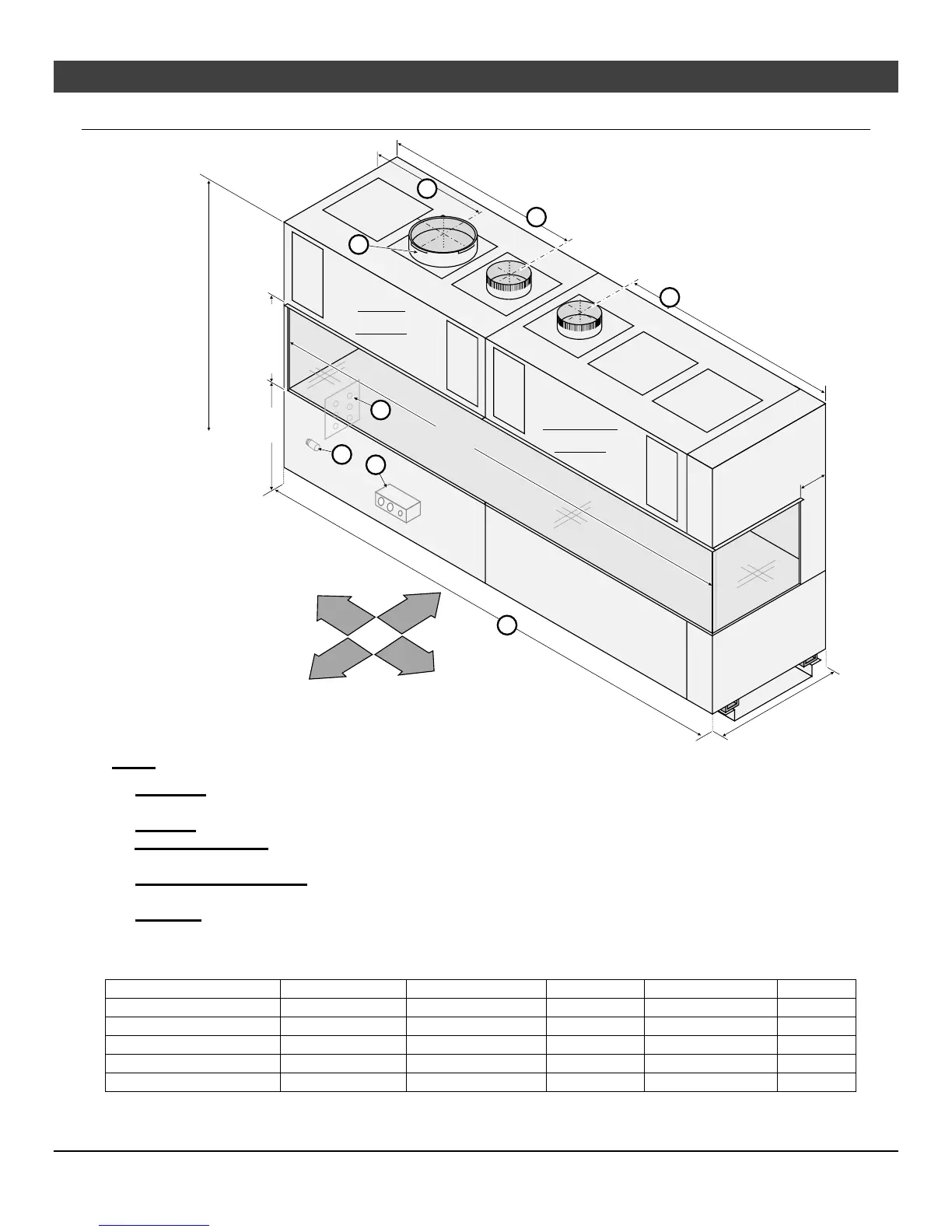 (e) Gas Inlet – On master module (NOTE: the gas inlet is always located along the front edge, even if master