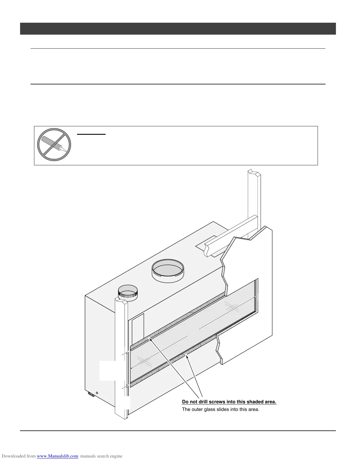 NOTE: Screws may be used to secure cement board or tile backer to the fireplace. Do not