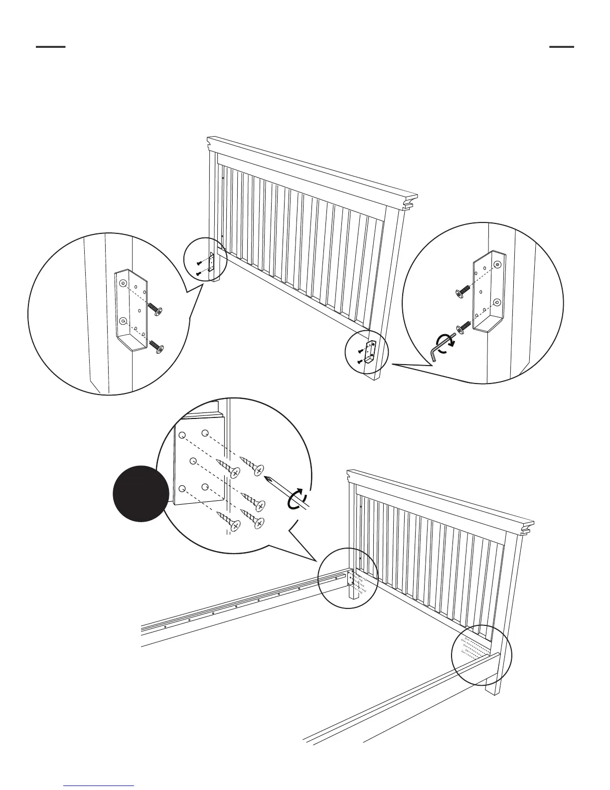 DaVinci Full Size Bed Conversion Rails - Main Assembly Steps; Prepare Crib for Conversion; Attach Brackets to Foot Board; Connect Rails to Foot Board