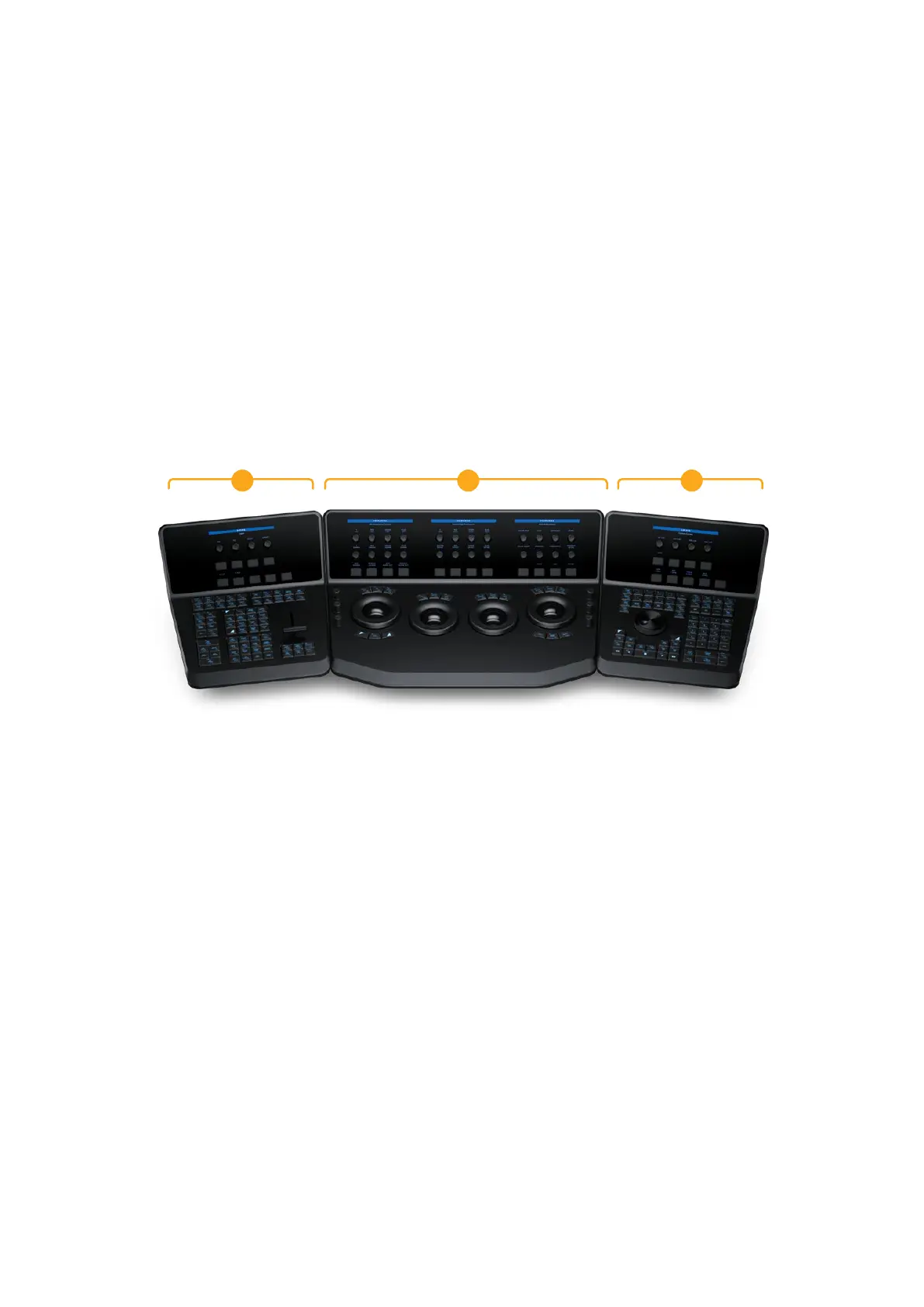 functionality. The biggest panel with the trackballs is meant to sit in the center, while the two
