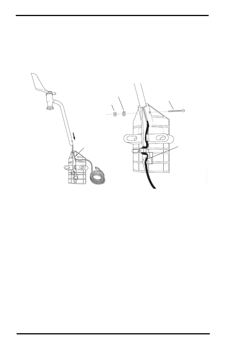 1. Insert the anemometer arm into the base, sliding the cable through the notch in
