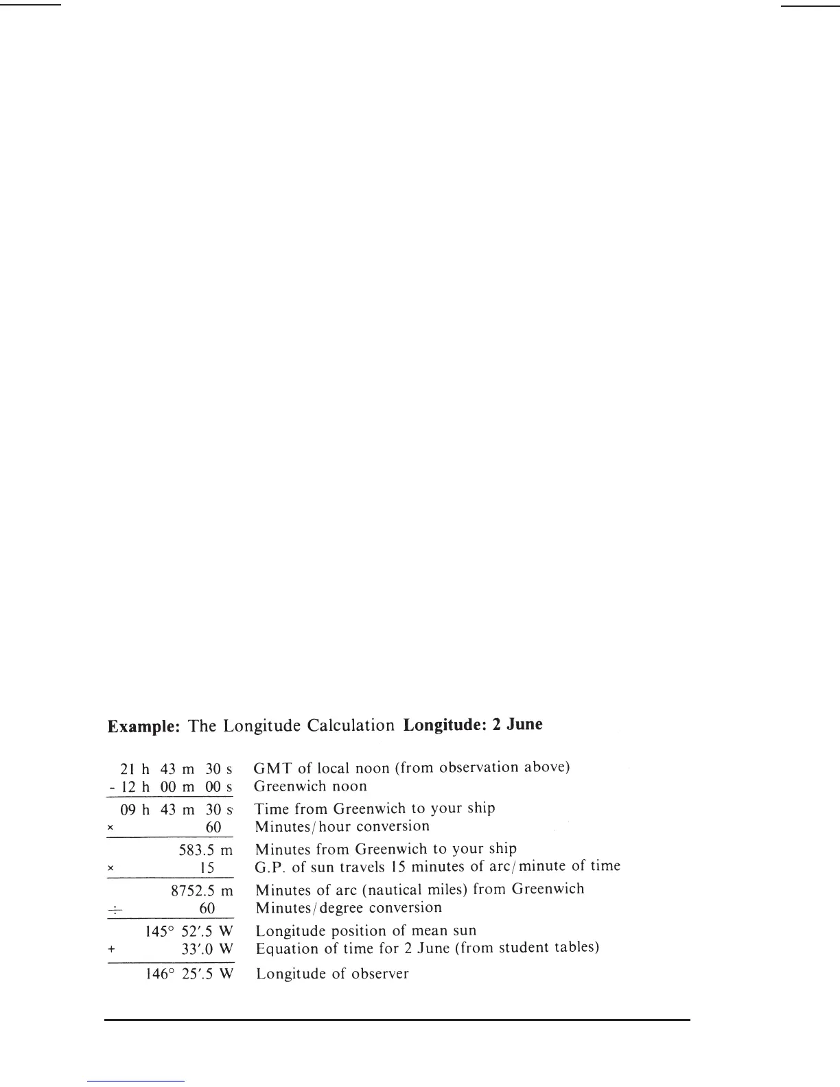 minute), longitude may be calculated by comparing local noon with