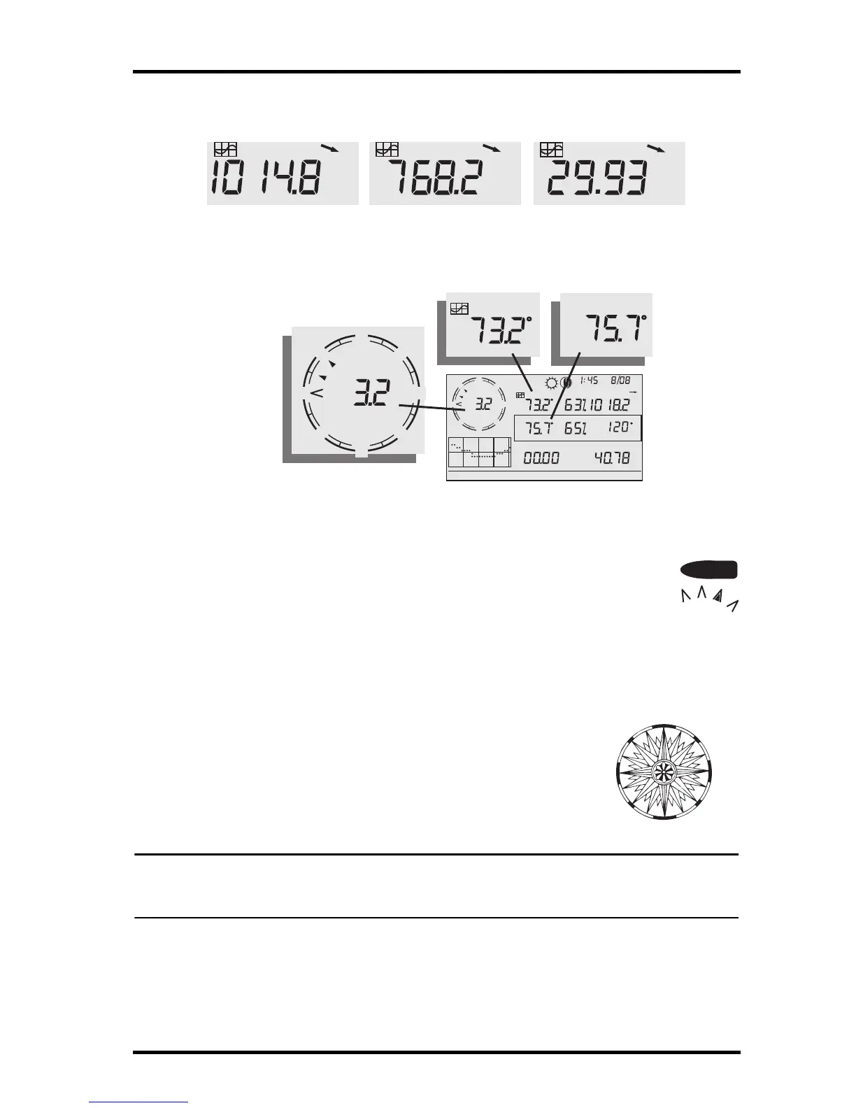 4. Press WIND a second time to display the wind direction