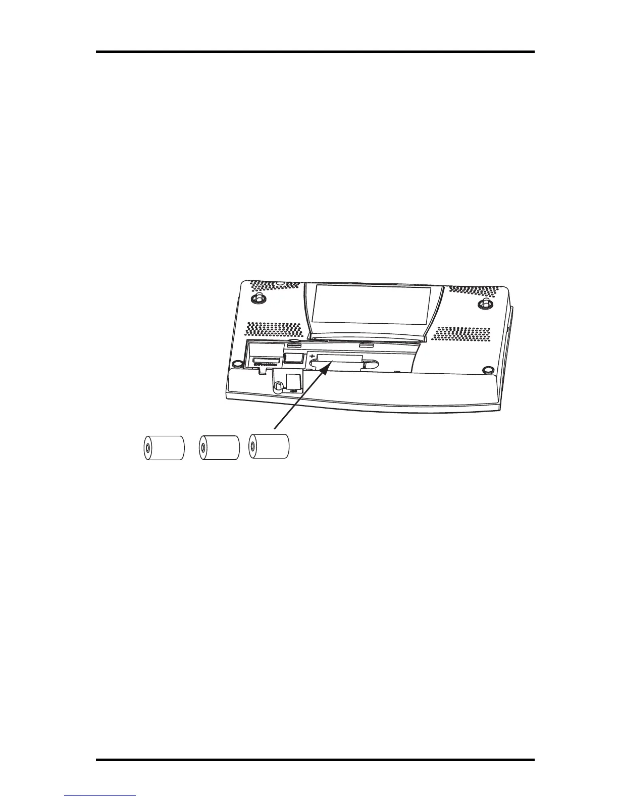 2. Insert three C batteries into the battery channel, negative (or flat) terminal