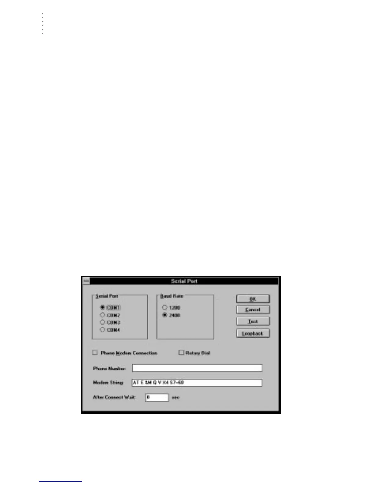 1. Choose Serial Port from the Setup menu or press Ctrl-I.