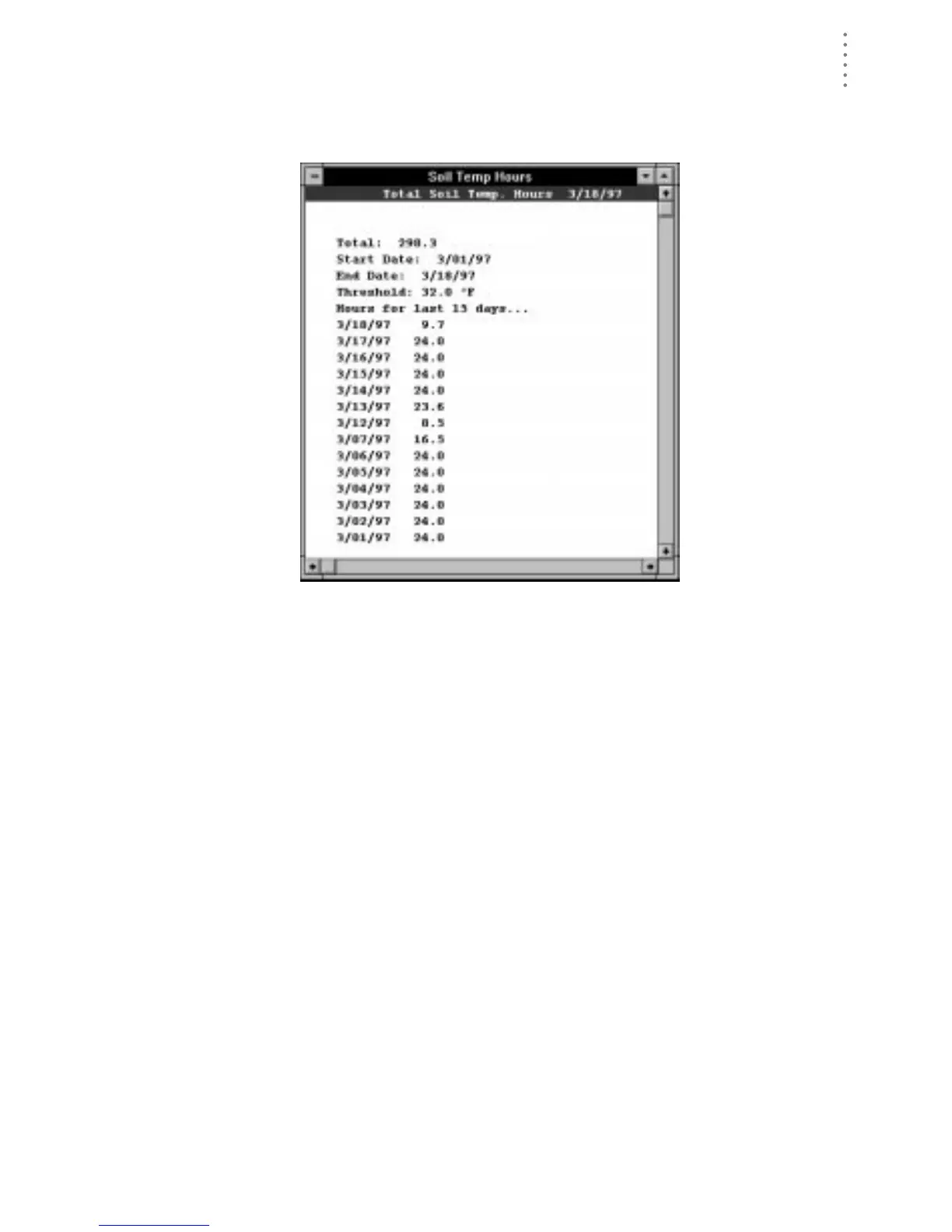 The software calculates and displays soil temperature hours information.