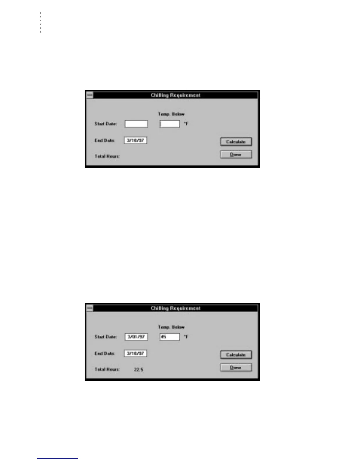 The software calculates chilling requirement for the selected period and dis-