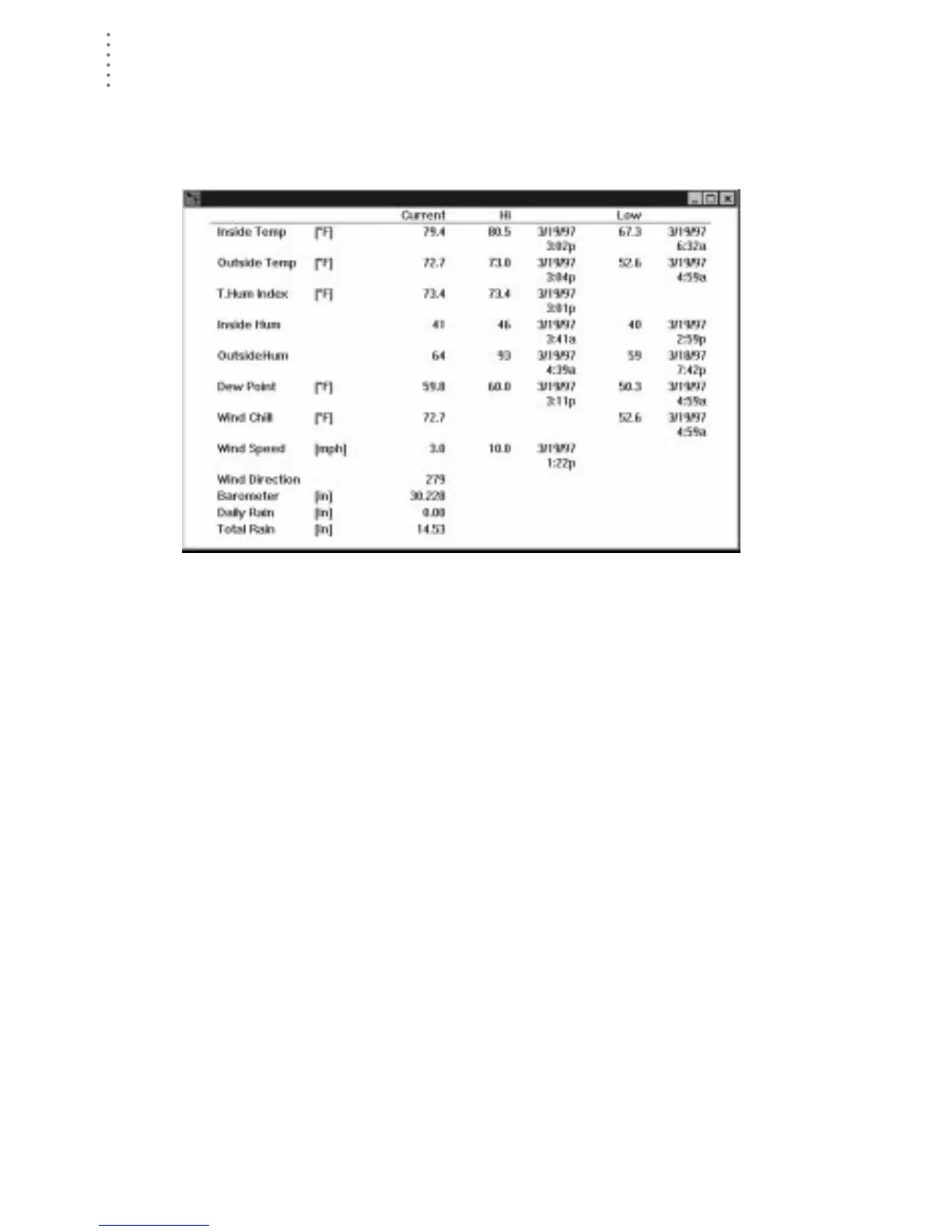 lows along with the time and date at which they occurred. The information on the