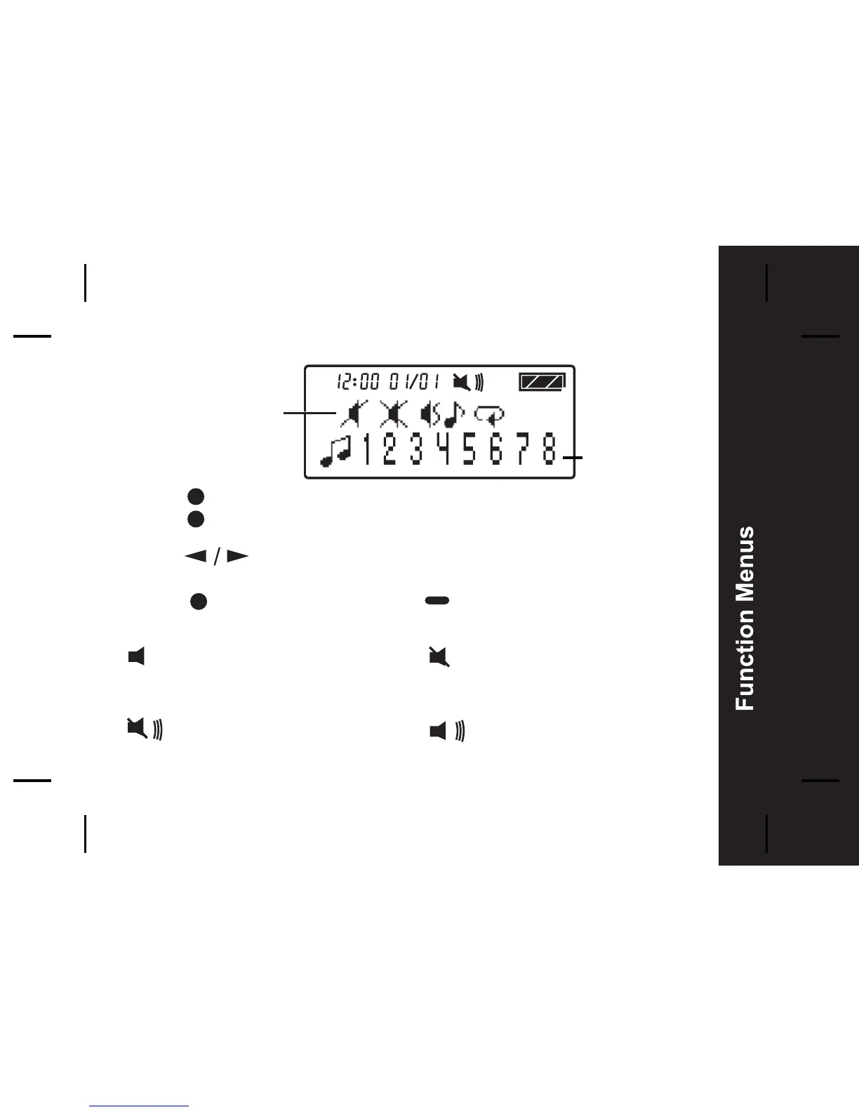 - Press to move to different alert modes and hear a sample from