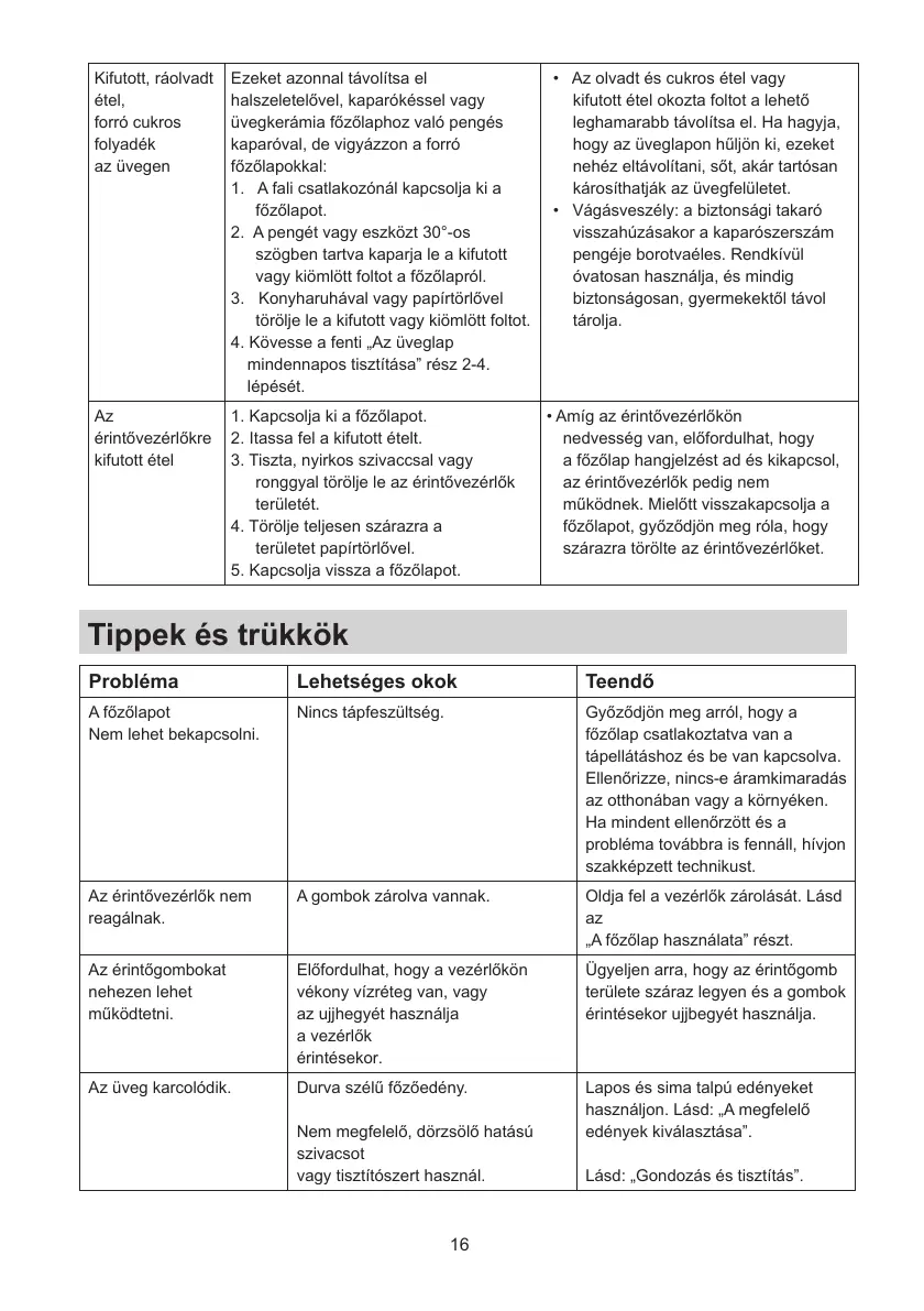 vagy kiömlött foltot a főzőlapról.