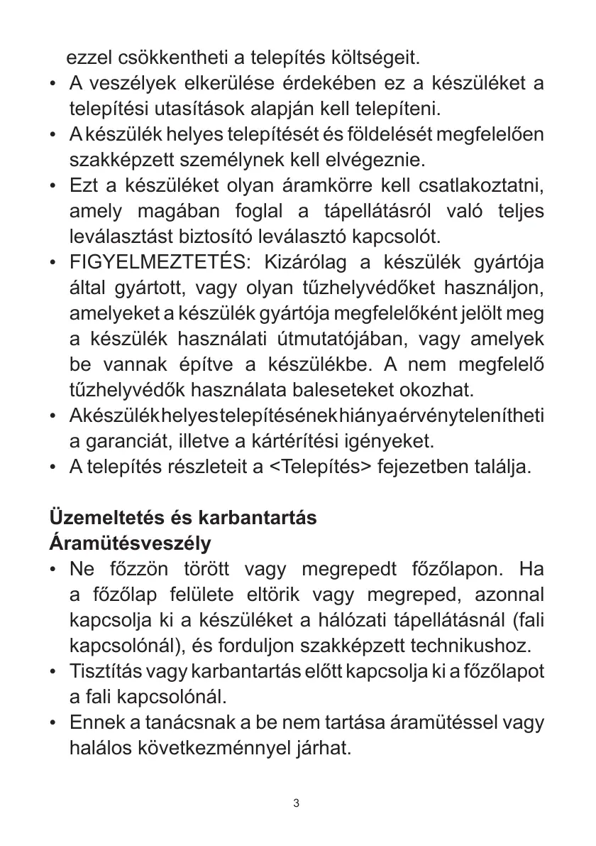 • Tisztítás vagy karbantartás előtt kapcsolja ki a főzőlapot