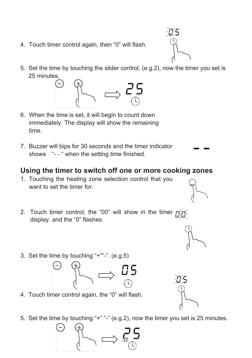 4. Touch timer control again, then “0” will flash.