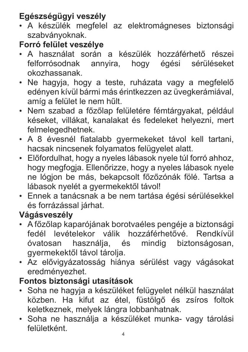 • A főzőlap kaparójának borotvaéles pengéje a biztonsági