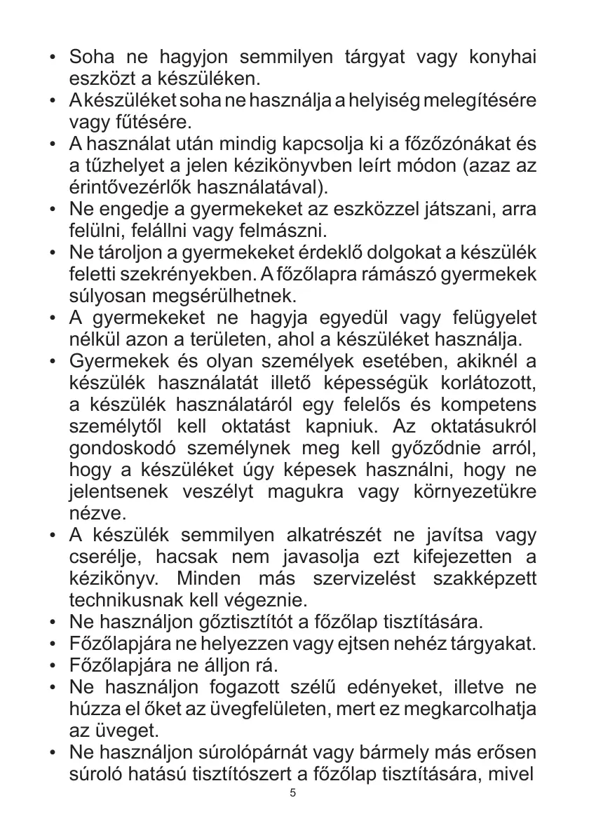 • Főzőlapjára ne helyezzen vagy ejtsen nehéz tárgyakat.