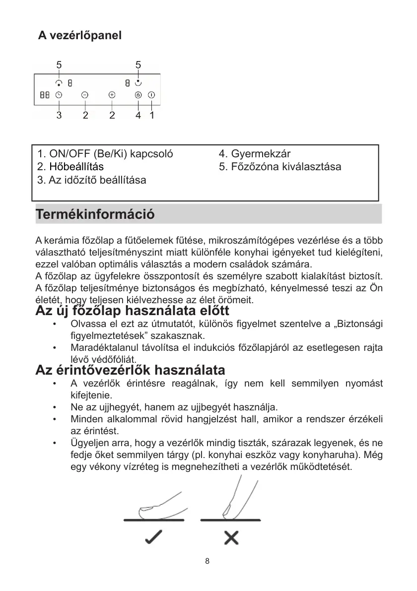 2. Hőbeállítás 5. Főzőzóna kiválasztása