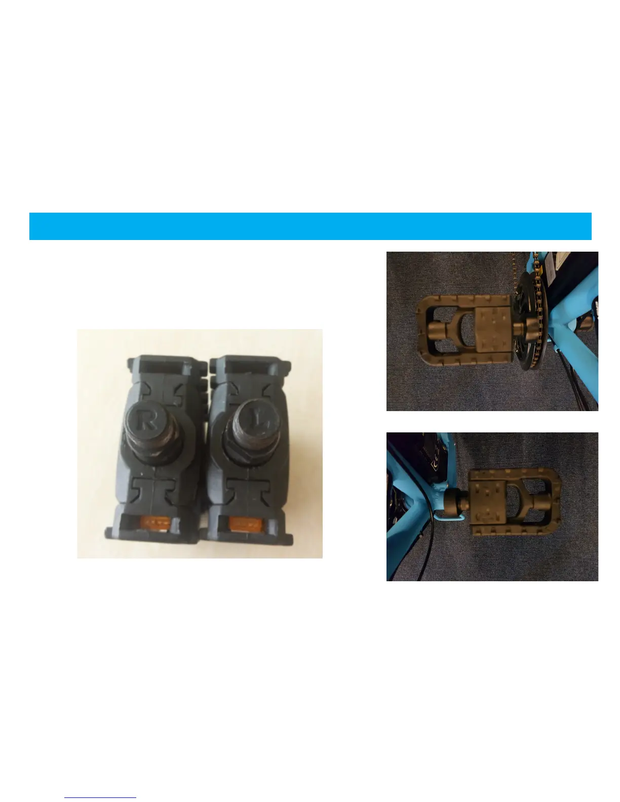 Pedals come in pairs with “R” & “L” labels (Right and Left) (Fig D)