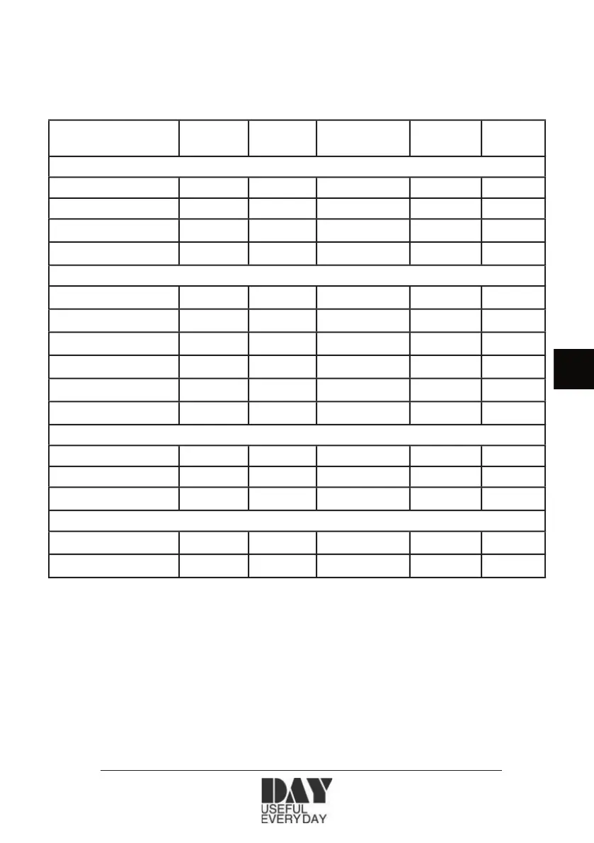 Allolev tabel sisaldab soovituslikke koguseid, küpsetusaegu ja temperatuure, mida kasutada