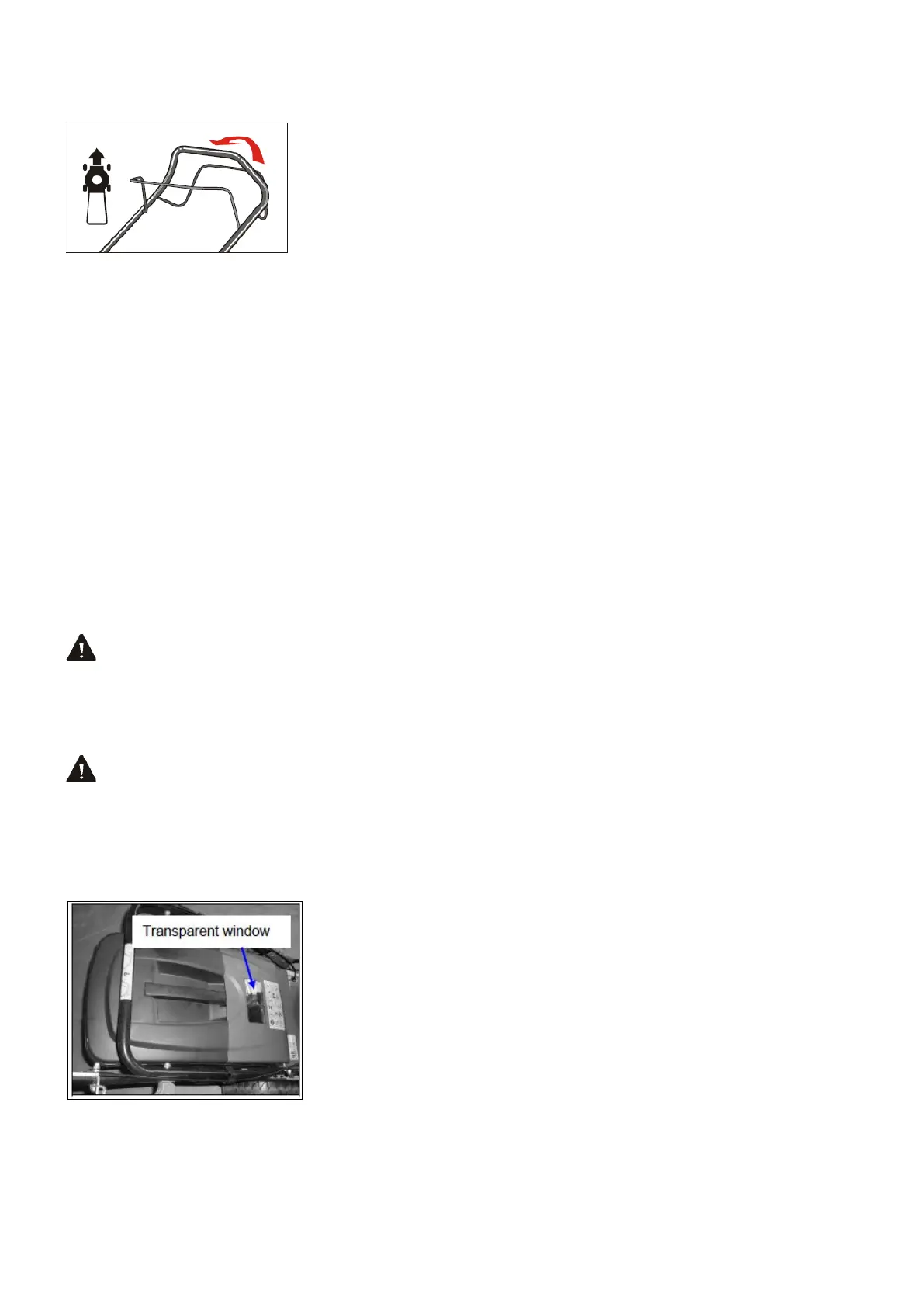 There is a transparent window on the rear cover which you can see the grass condition in the grass catcher. (Fig. 11A)