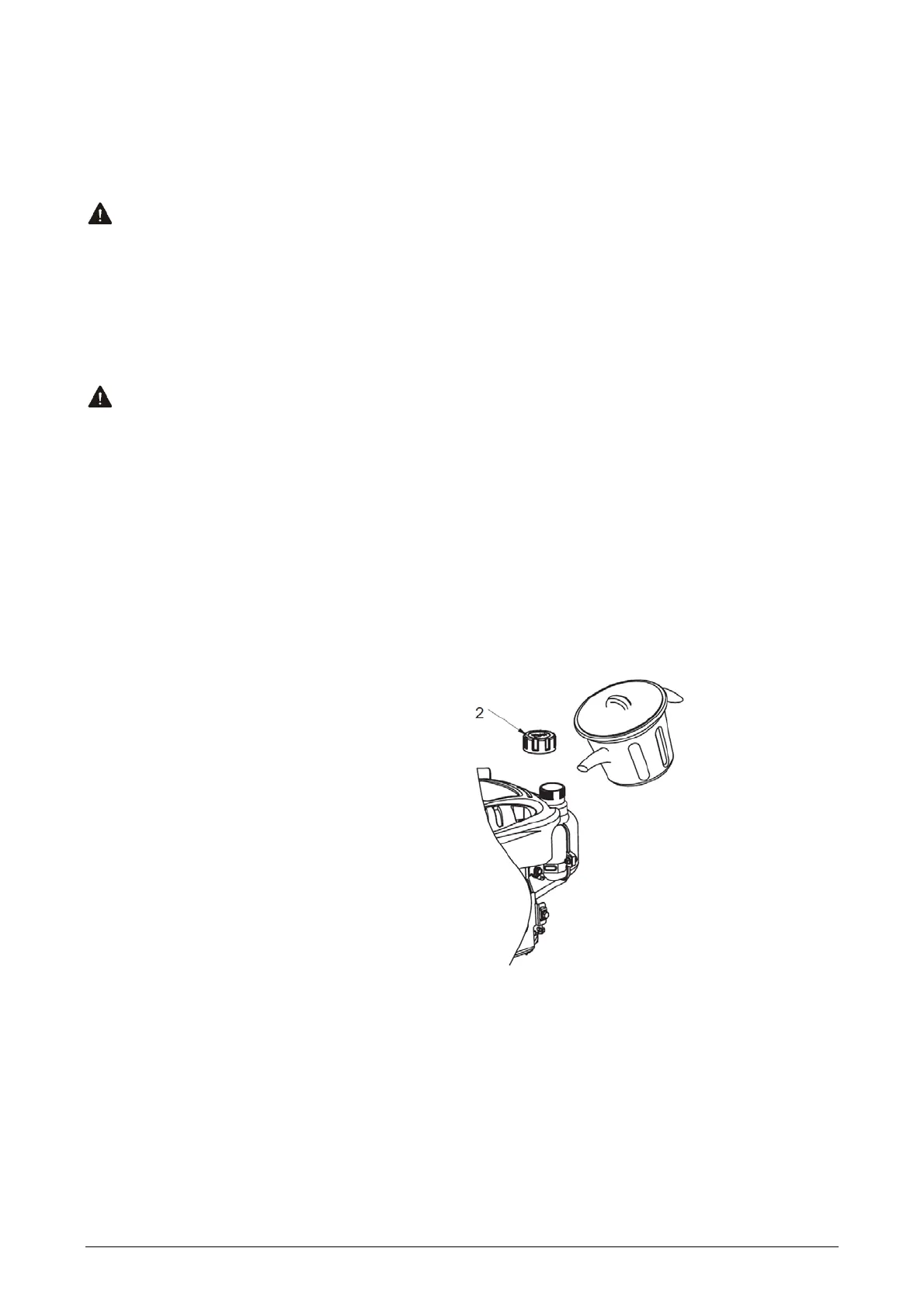 2. Kraftstoff bis zur unteren Markierung des Füllstandes im Stutzen des Kraftstofftanks nachfüllen.