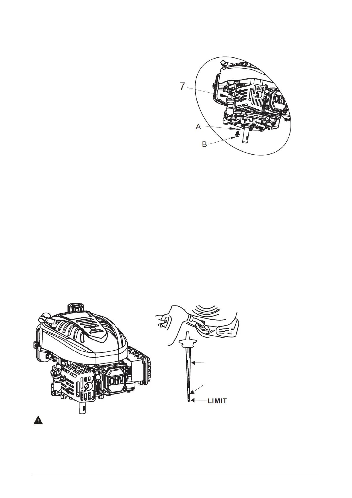 Betrieb des Motors mit niedrigem Ölstand kann eine Beschädigung zu Folge haben.