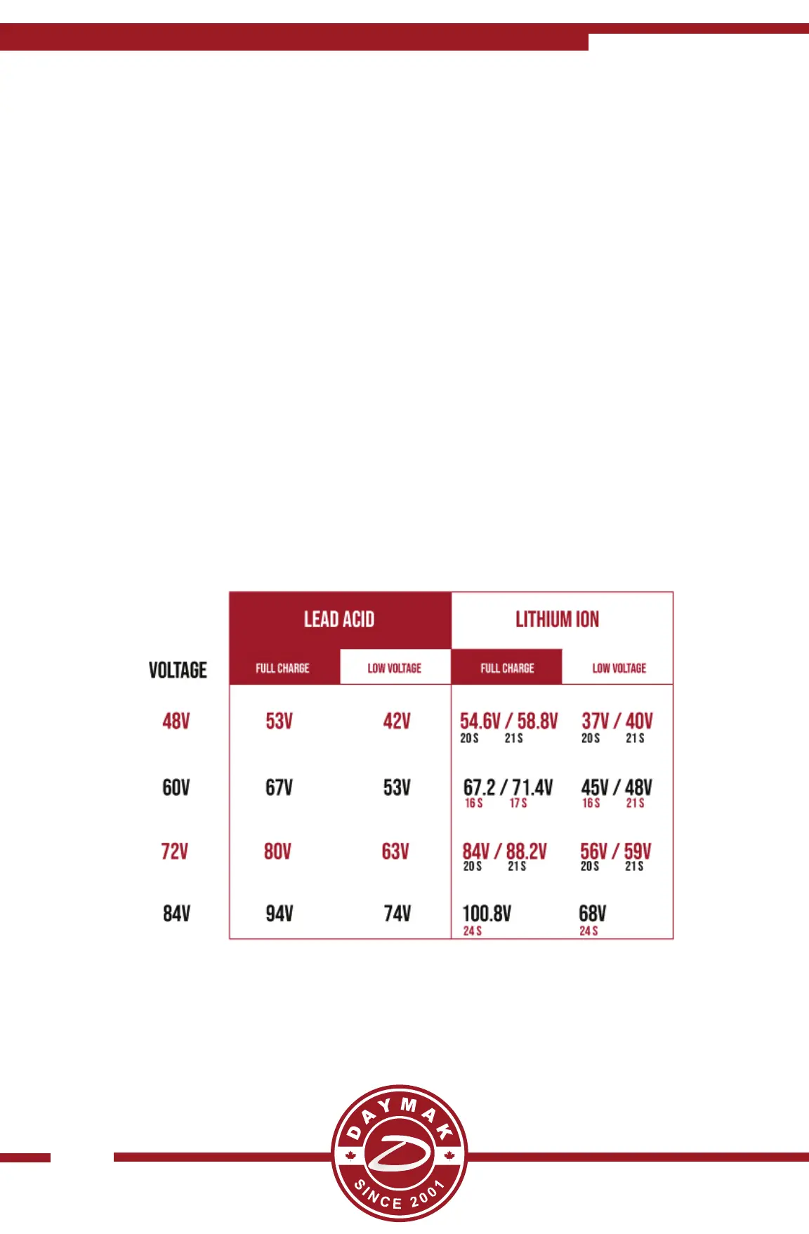 voltage and full charge reading should be. Underneath each reading on the above chart
