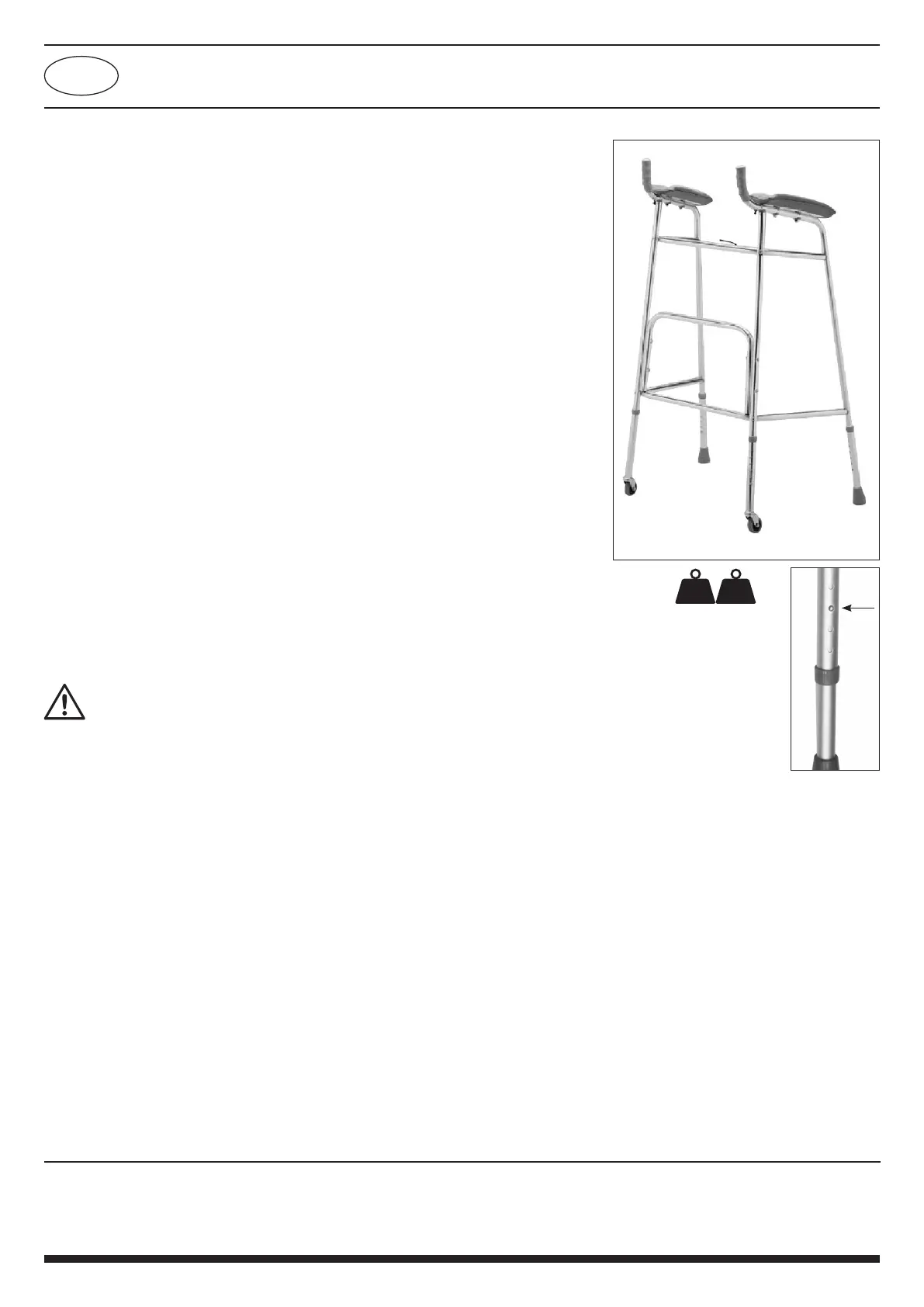 efterfulgt af det andet ben. Gå frem. Pas på, at du ikke går for tæt på gangrammen. Placer gangrammen