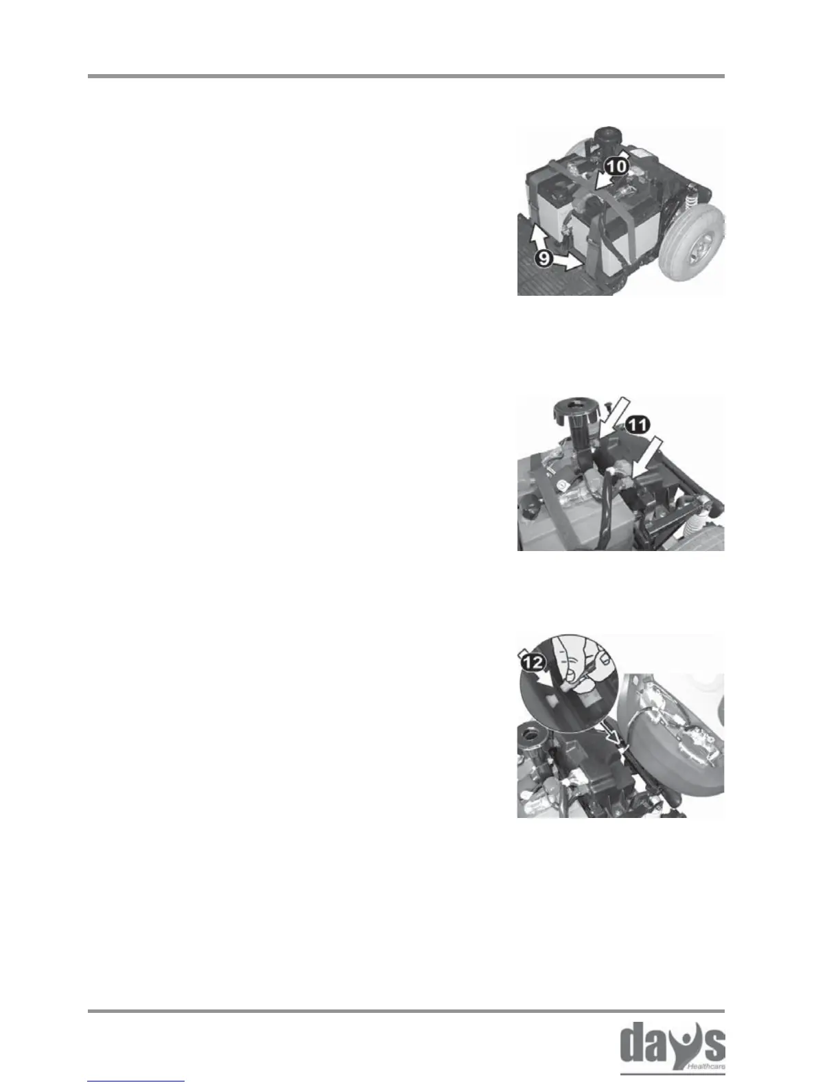 Route the safety straps (9 + 10)