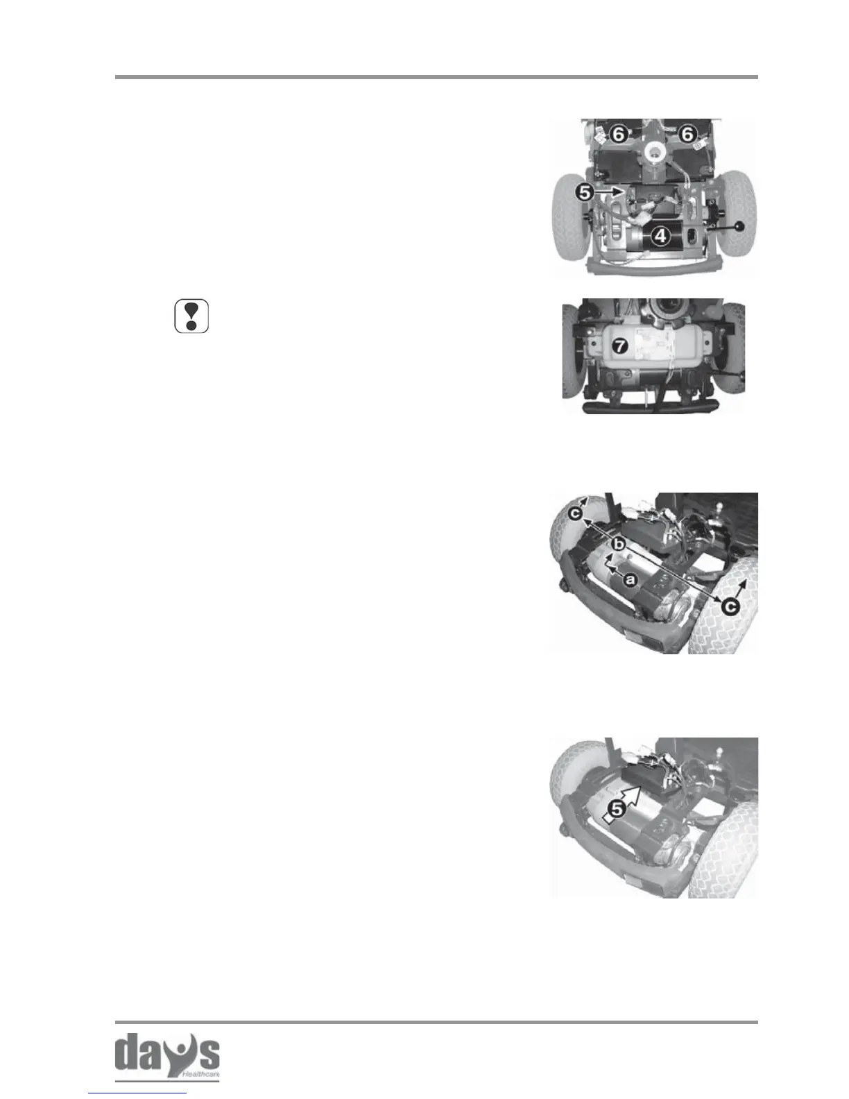 • the drive motor with rear axle (4)