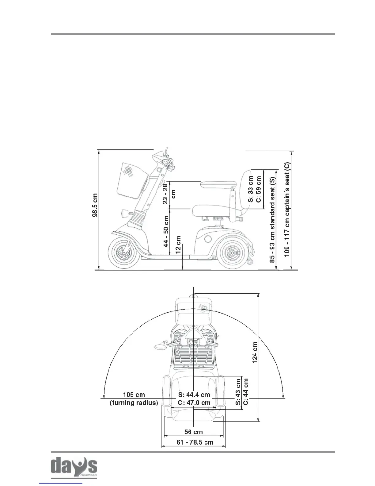 Days Strider MD 3 - Dimensions 3-Wheel Version; Dimensions 4-Wheel Version
