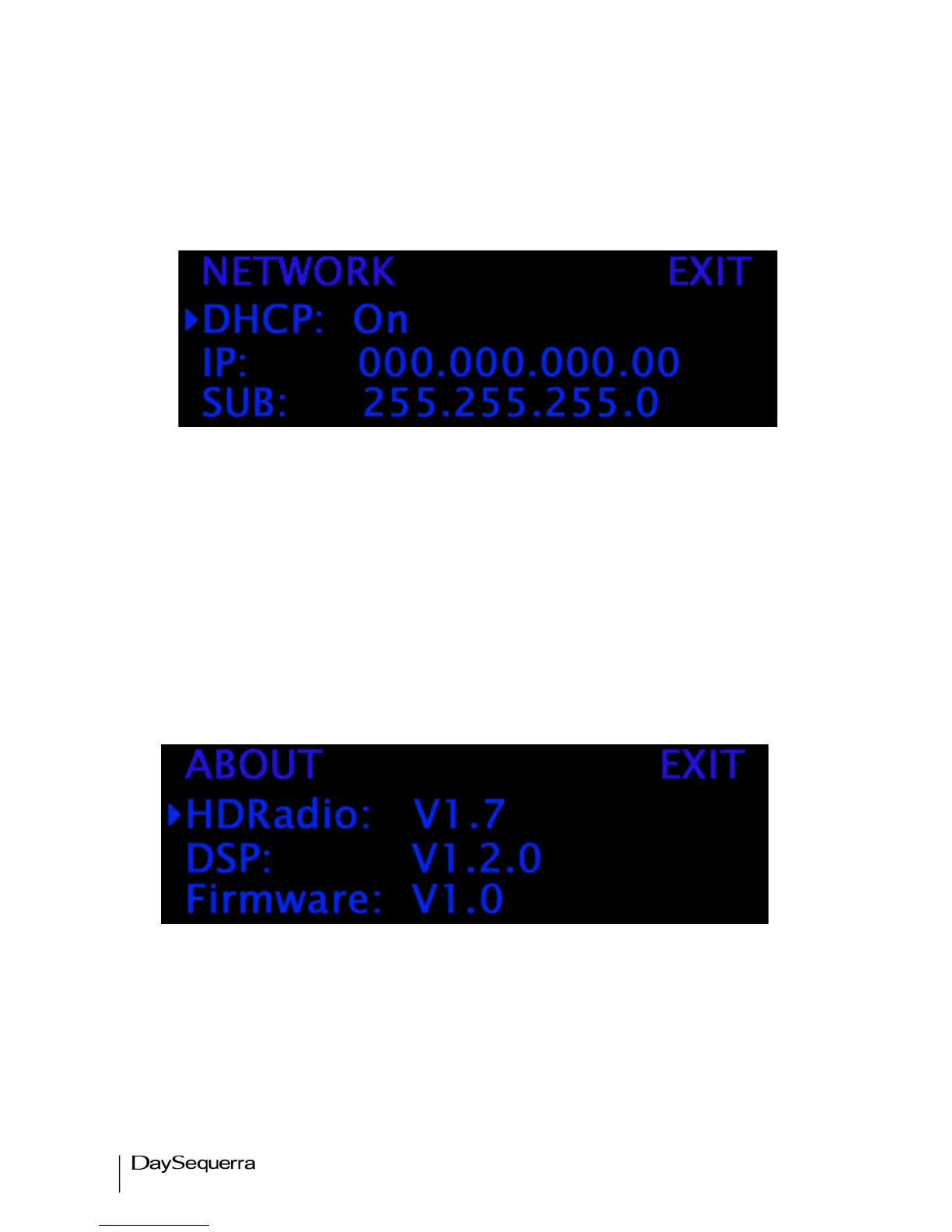 A Read-Only menu displaying the HDRadio version, DSP version and Firmware version.