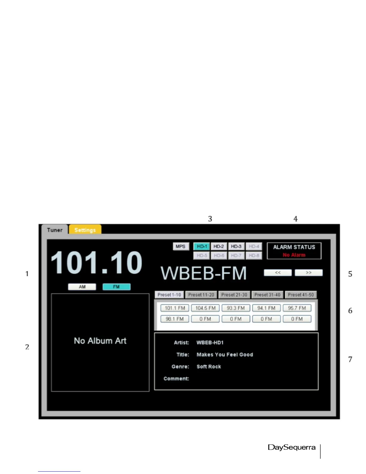 and displays the Alarm Status of the M4.2S. When Album art and PAD/SIS/RBDS data is available it is
