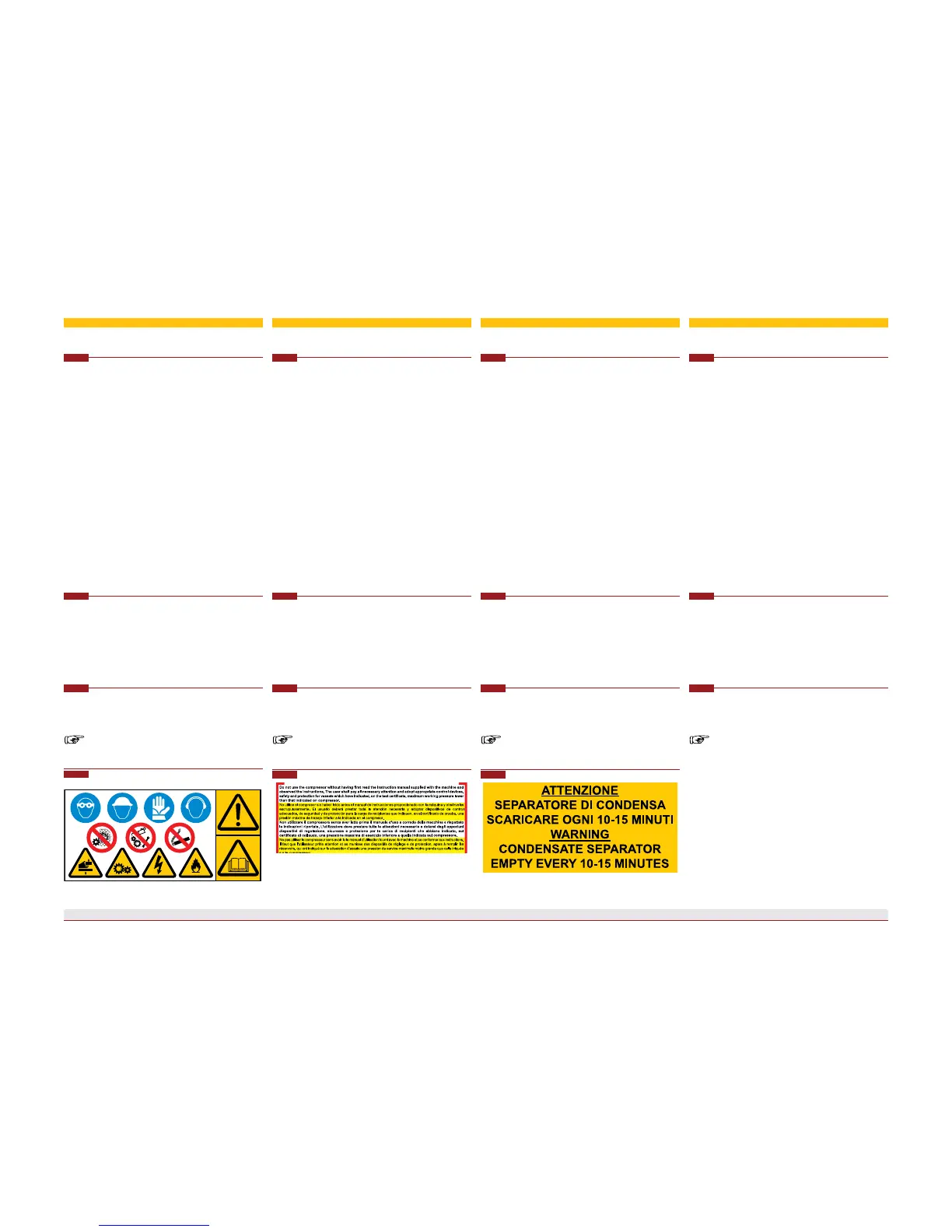 3.3.1 Descrizione delle targhette di sicurezza 3.3.1 Safety info labels: description 3.3.1 Descripción de las placas de seguridad 3.3.1 Description des plaques de sécurité