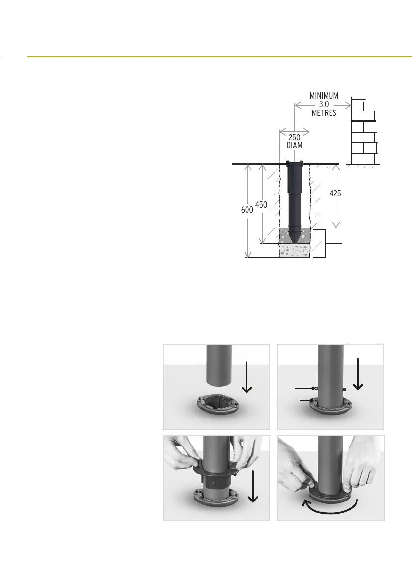 2. Excavate a hole 250mm in diameter x 600mm deep.