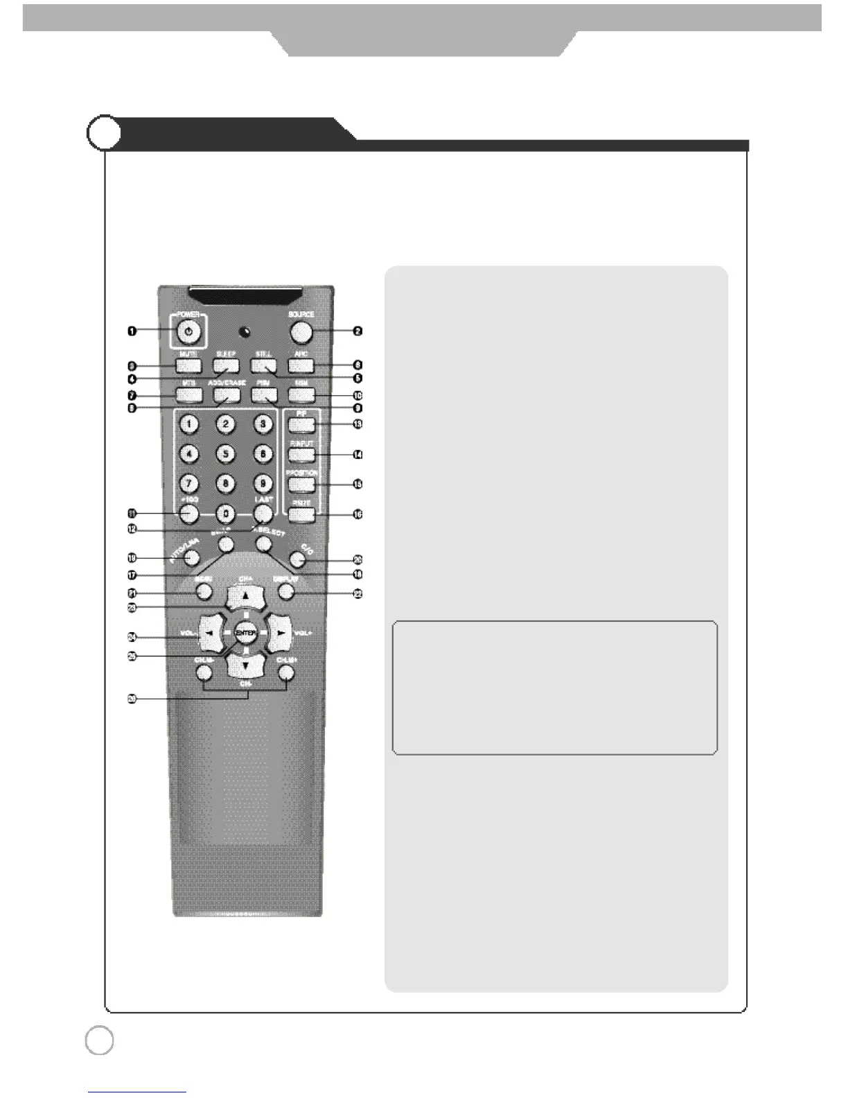 1. POWER : TURNS THE TV ON AND OFF(page.20)