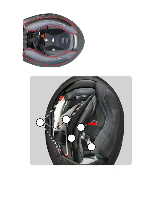 Remove the chin strap from cheek pad hole (5). Repeat this