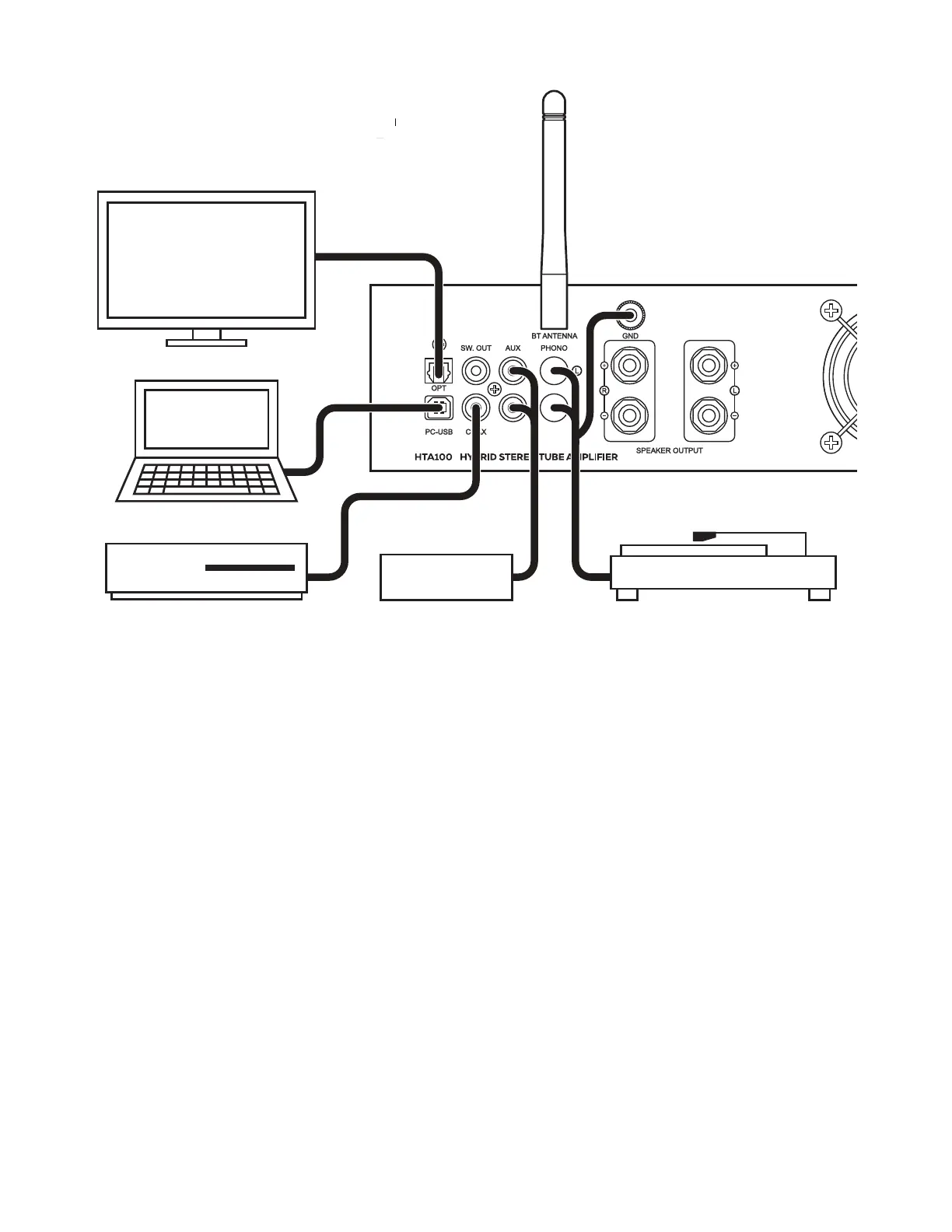 The HTA100 is capable of connecting directly to most turntables without the addition of an external phono preamplier.