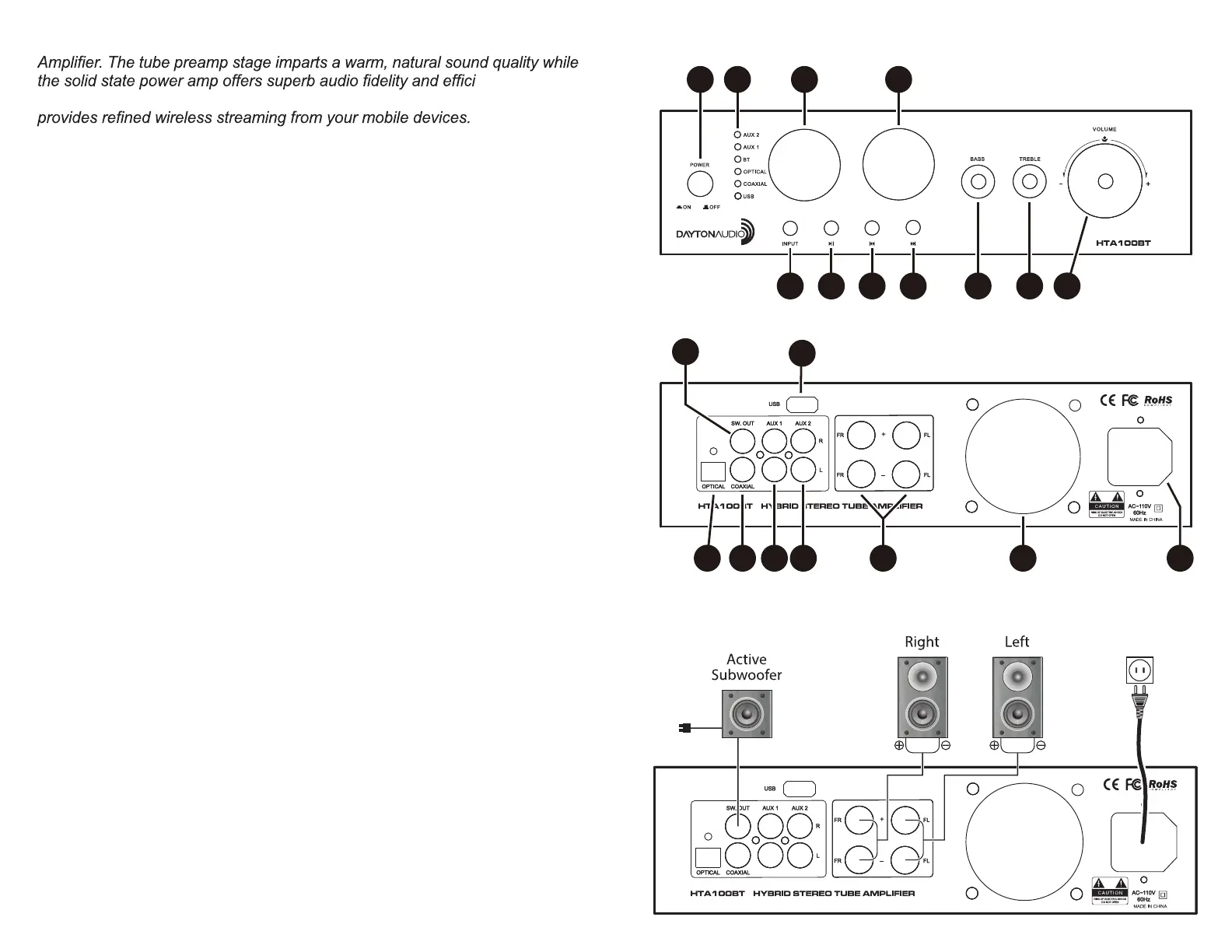 Thank you for purchasing the Dayton Audio HTA100BT Hybrid Stereo Tube