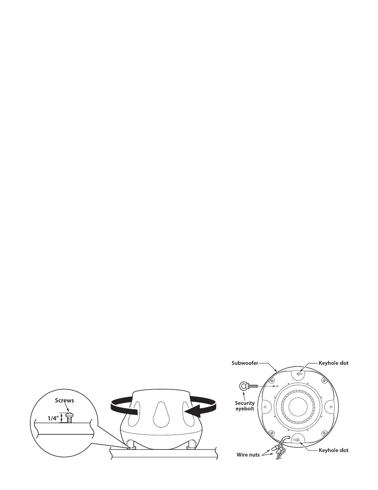 is locked into the screw heads. For installation in a garden or ower bed, place the subwoofer on a at level